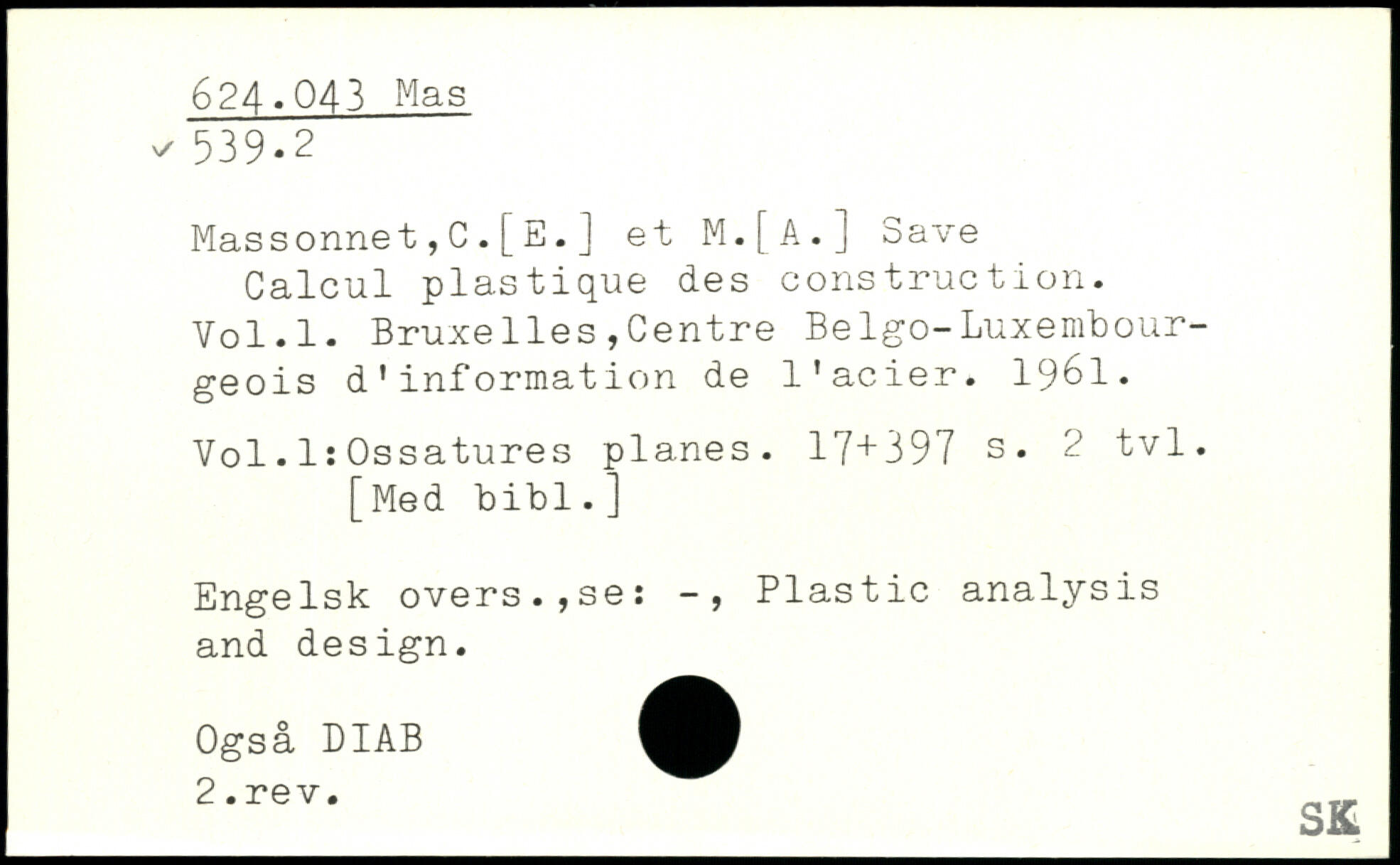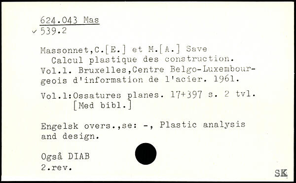 Massonnet,C.[E.] et M.[A.] Save Calcul plastique des construction.