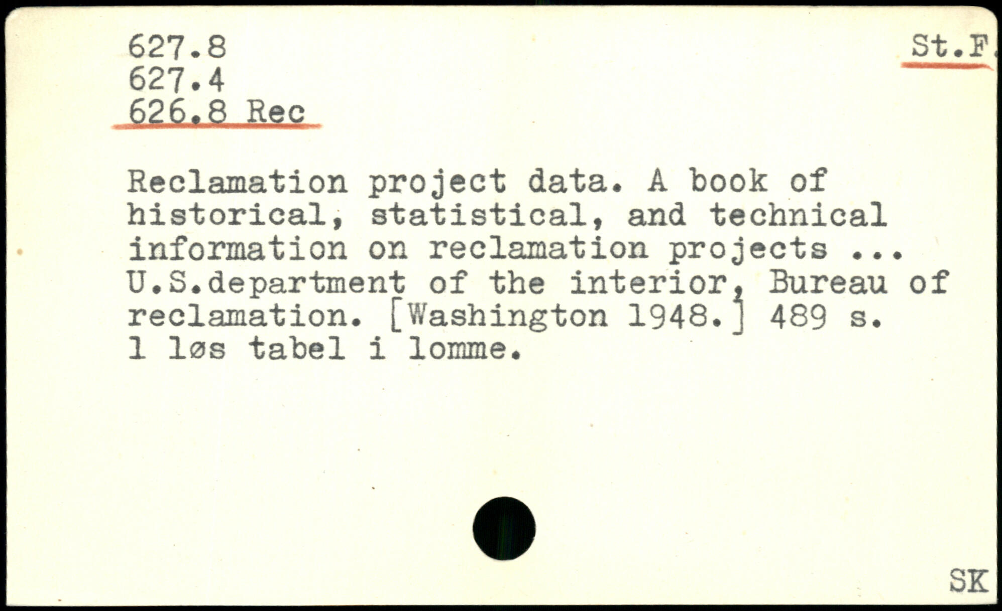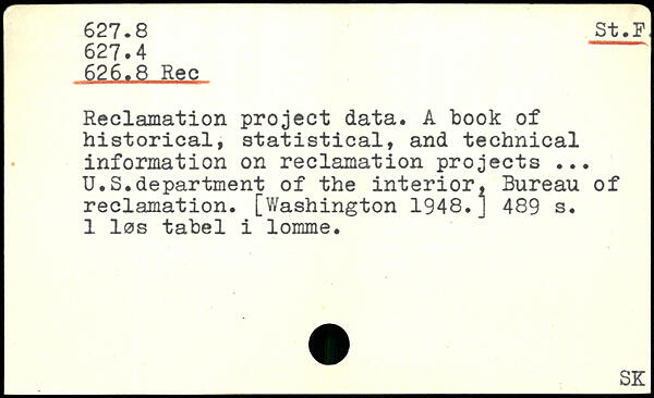 Reclamation project data. A book of historical, statistical, and technical information on reclamation projects ... U.S.department of the interior. Bureau of reclamation.