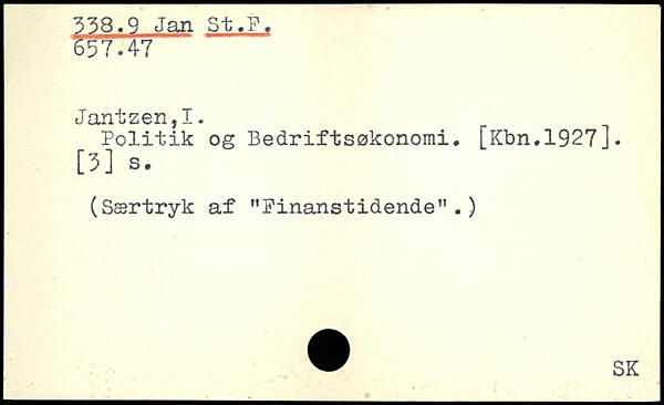Politik og Bedriftsøkonomi. [Kbn,1927j. [3] s.