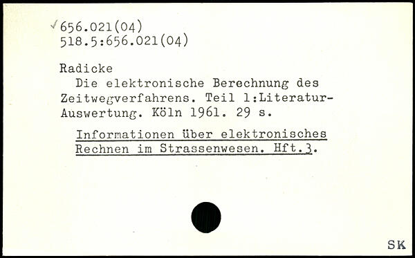 Die elektronische Berechnung des Zeitwegverfahrens. Teil 1:Literatur-Auswertung.