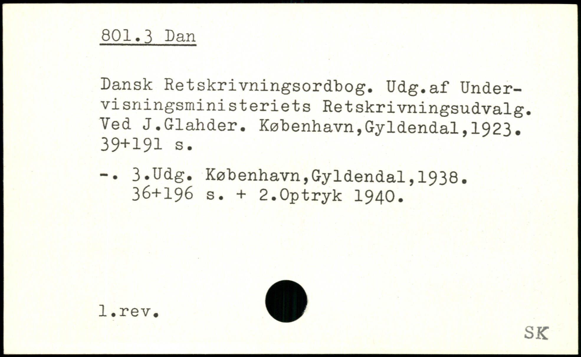 Dansk Retskrivningsordbog. Udg.af Undervisningsministeriets Retskrivningsudvalg. Ved J.Glahder.