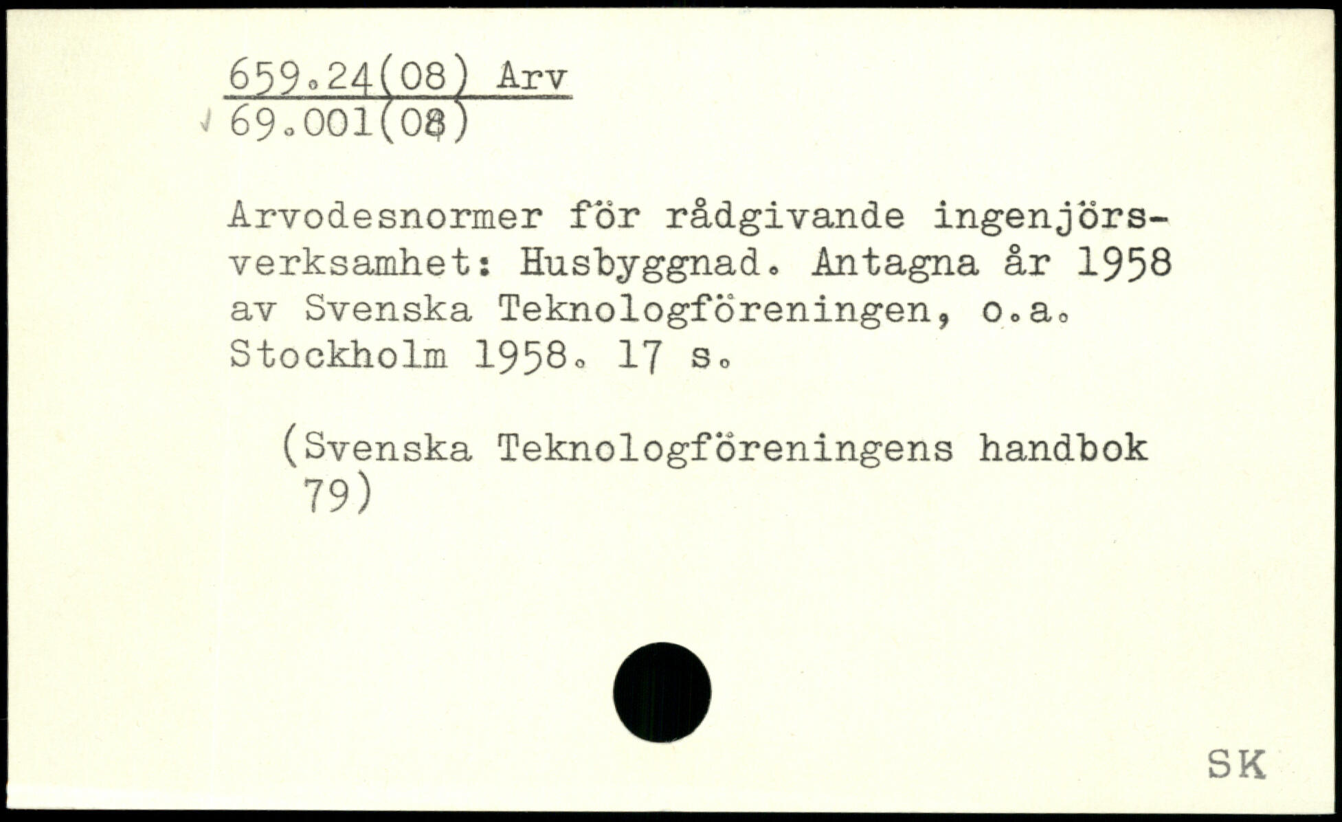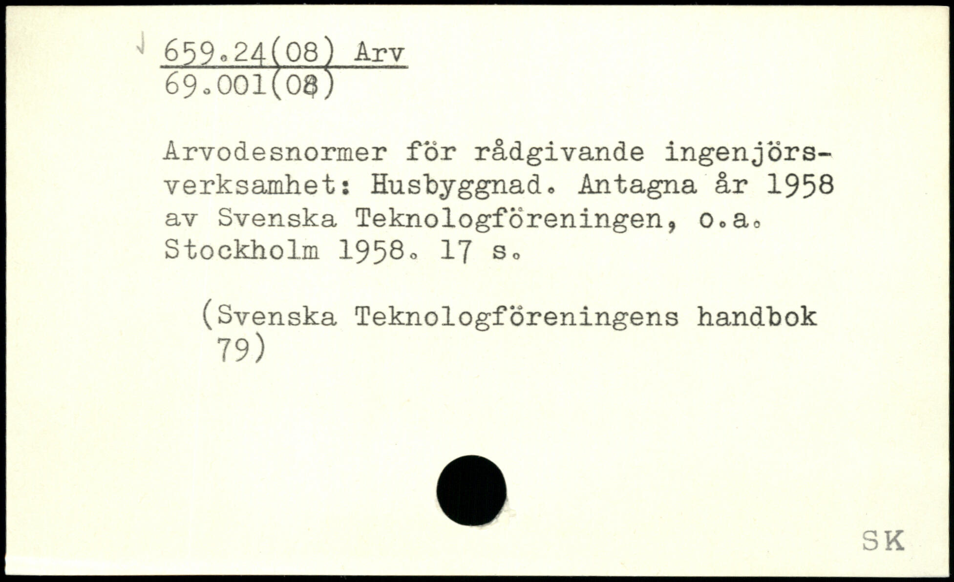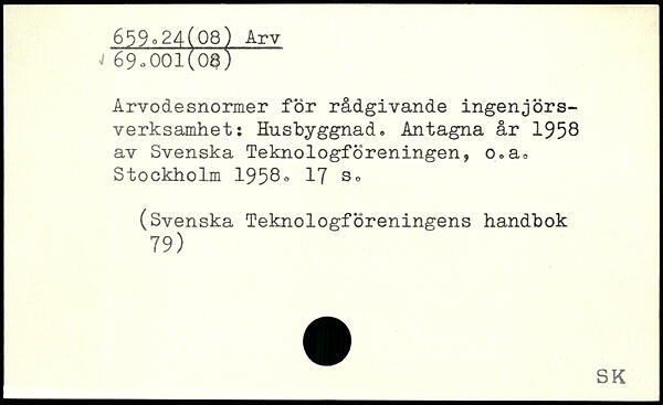 Arvodesnormer för rådgivande ingenjörsverksamhet: Husbyggnad. Antagna år 1958 av Svenska Teknologföreningen, o.a.