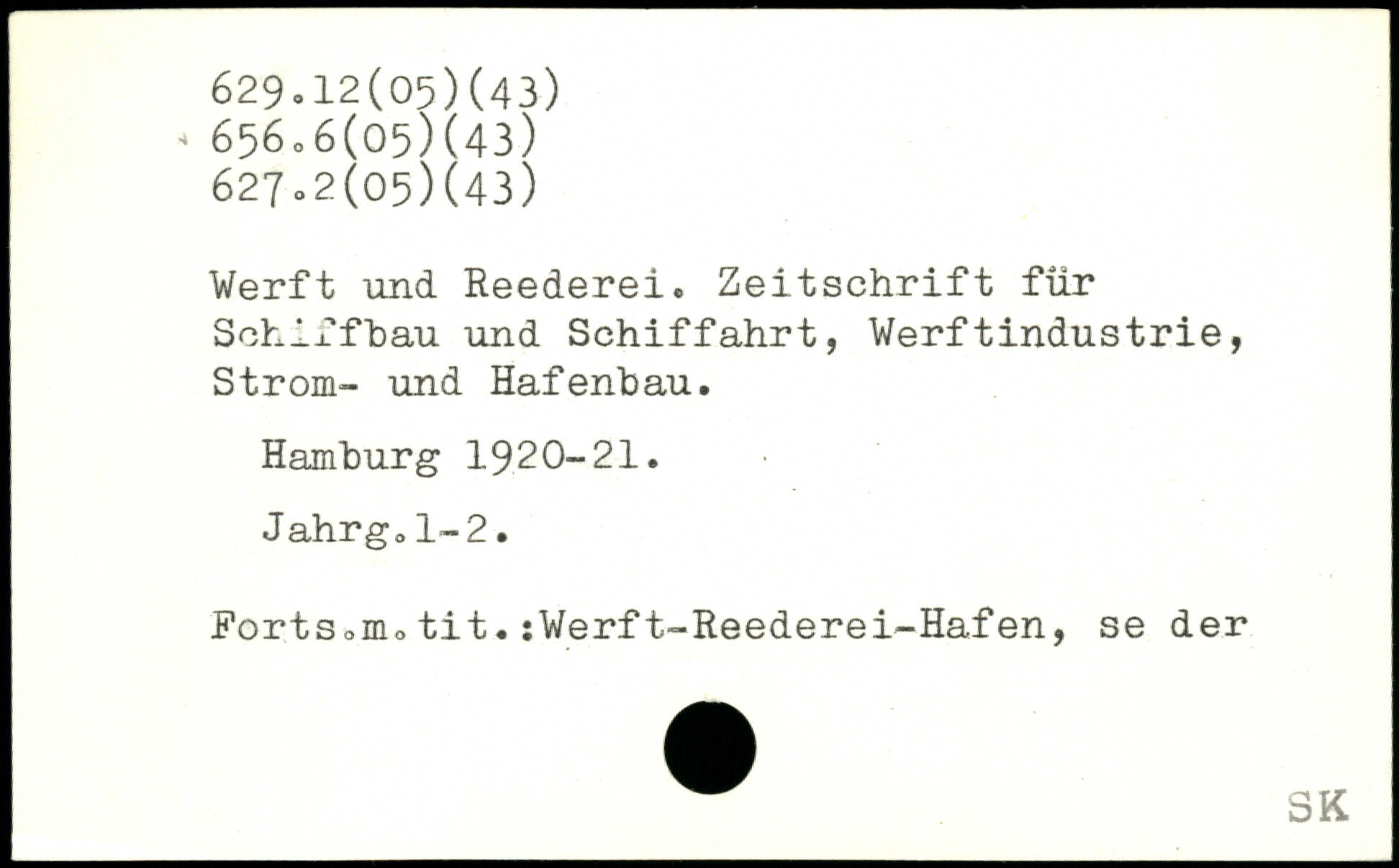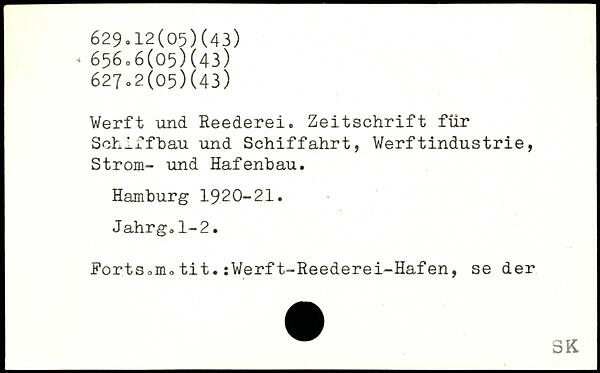 Werft und Reederei. Zeitschrift für Schiffbau und Schiffahrt, Werftindustrie, Strom- und Hafenbau.