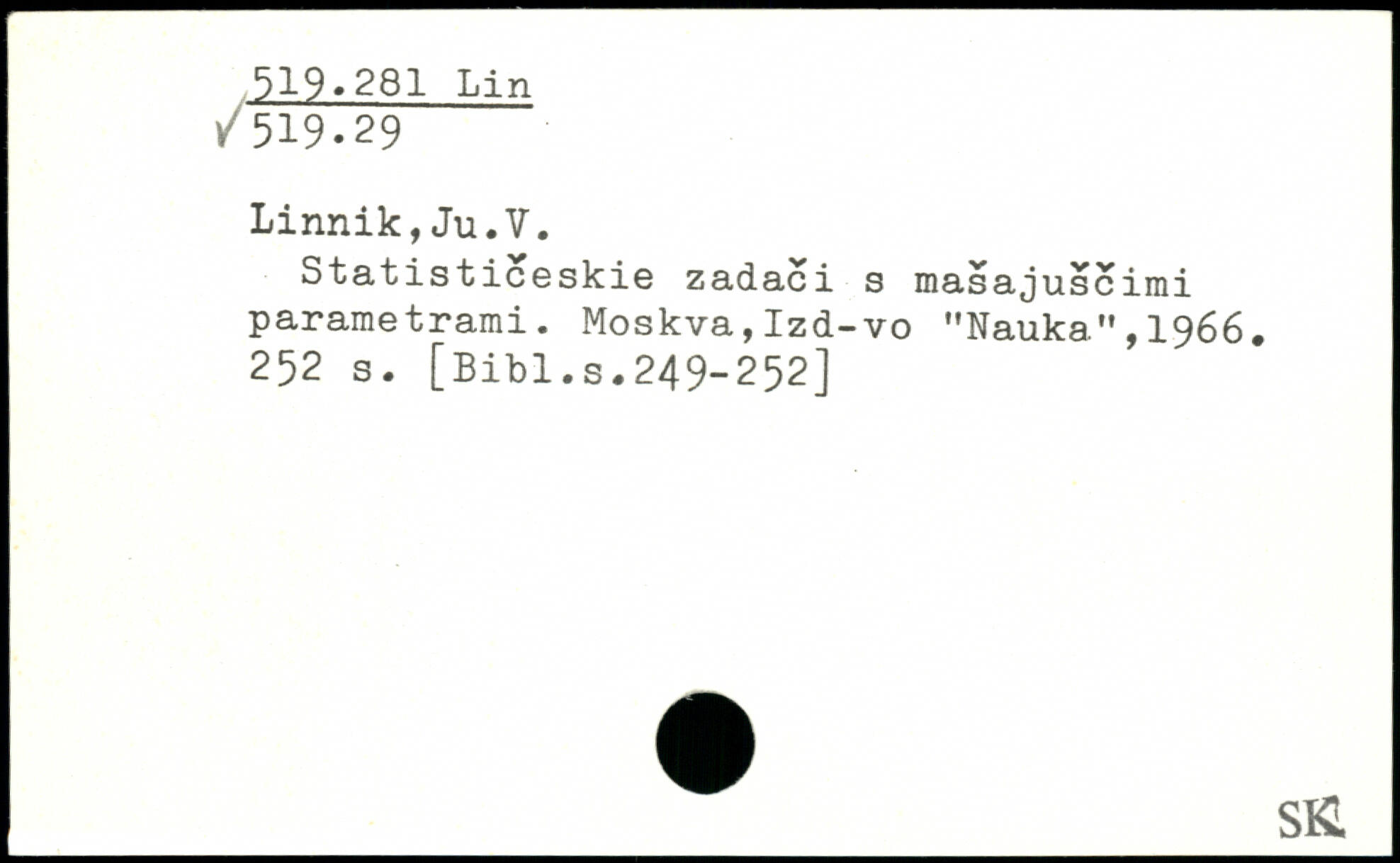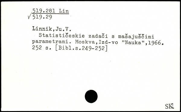 Linnik,Ju.V. Statisticeskie zadaci s masajuse irai parametrami. Moskva,Izd-vo "Nauka.",1966.