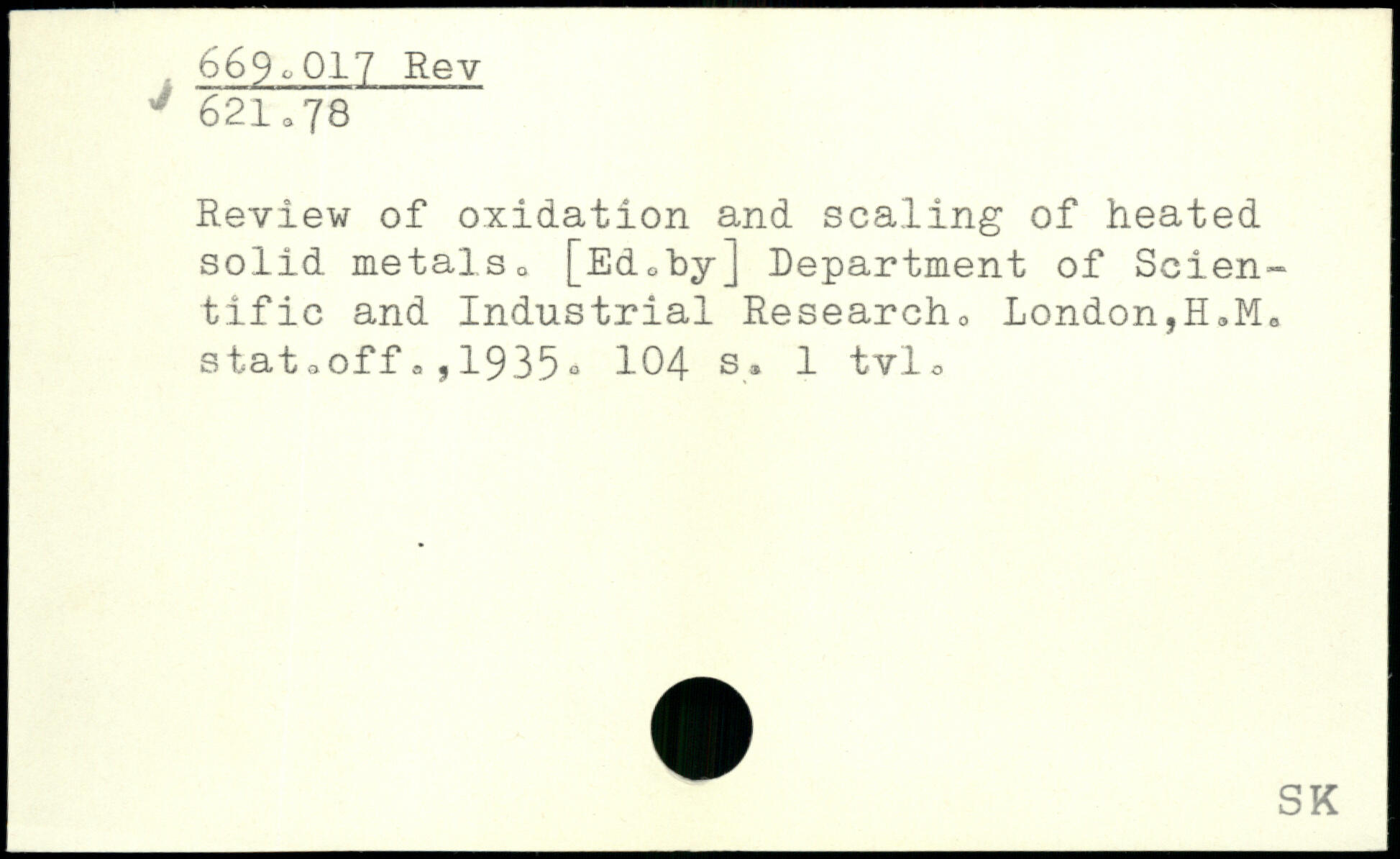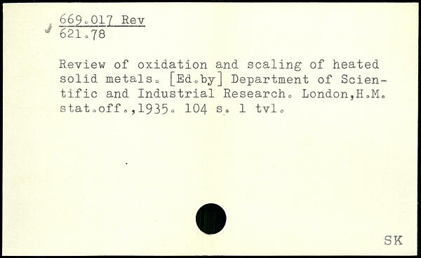 Review of oxidation and scaling of heated solid metal So [Edohy] Department of Scientific and Industrial Researcho London,HJ, stat,off,,1935.