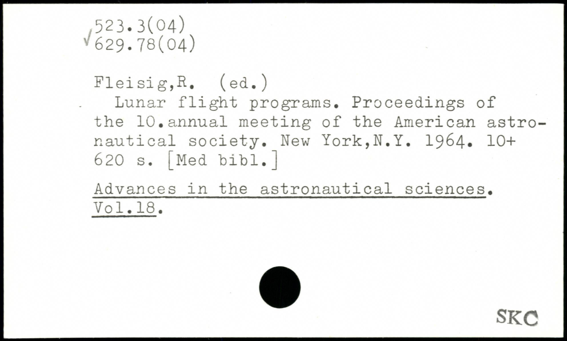 Lunar flight programs. Proceedings of the 10.annual meeting of the American astro-nautical society. New York,N.Y. 1964. 10+