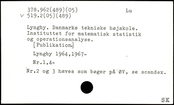 Lyngby. Danmarks tekniske højskole. Instituttet for matematisk statistik og operationsanalyse.