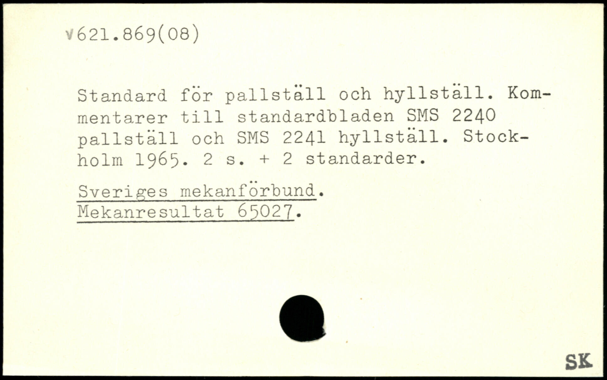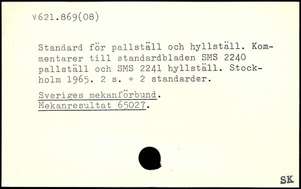 Standard för pallställ och hyllställ. Kommentarer till standardhladen SMS 2240 pallställ och SMS 2241 hyllställ.