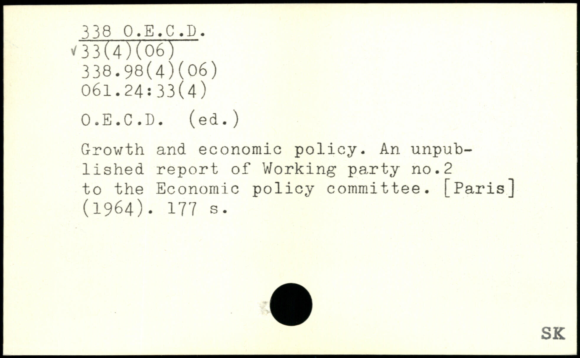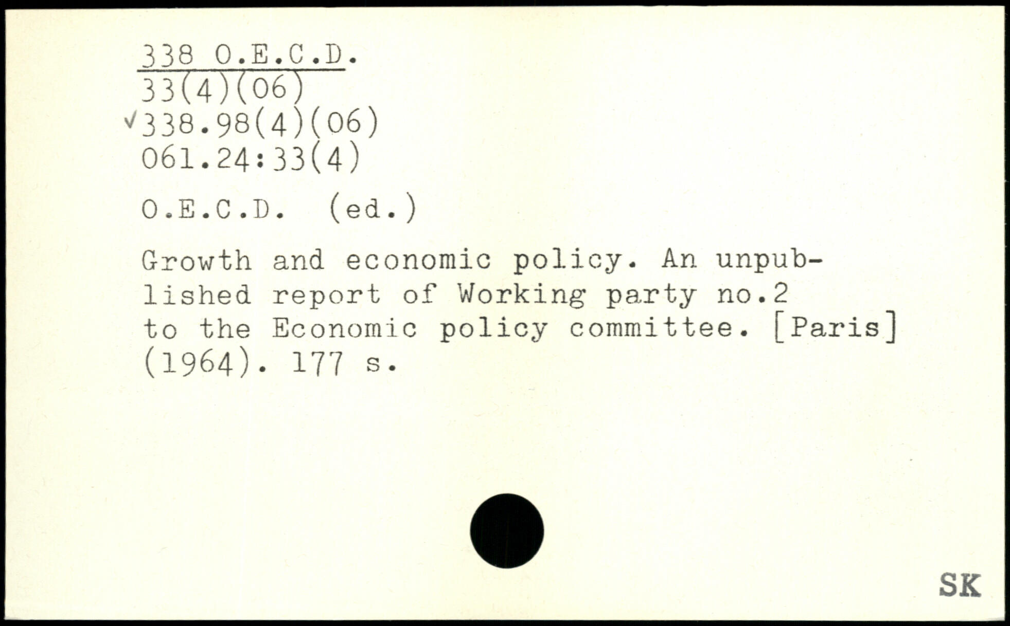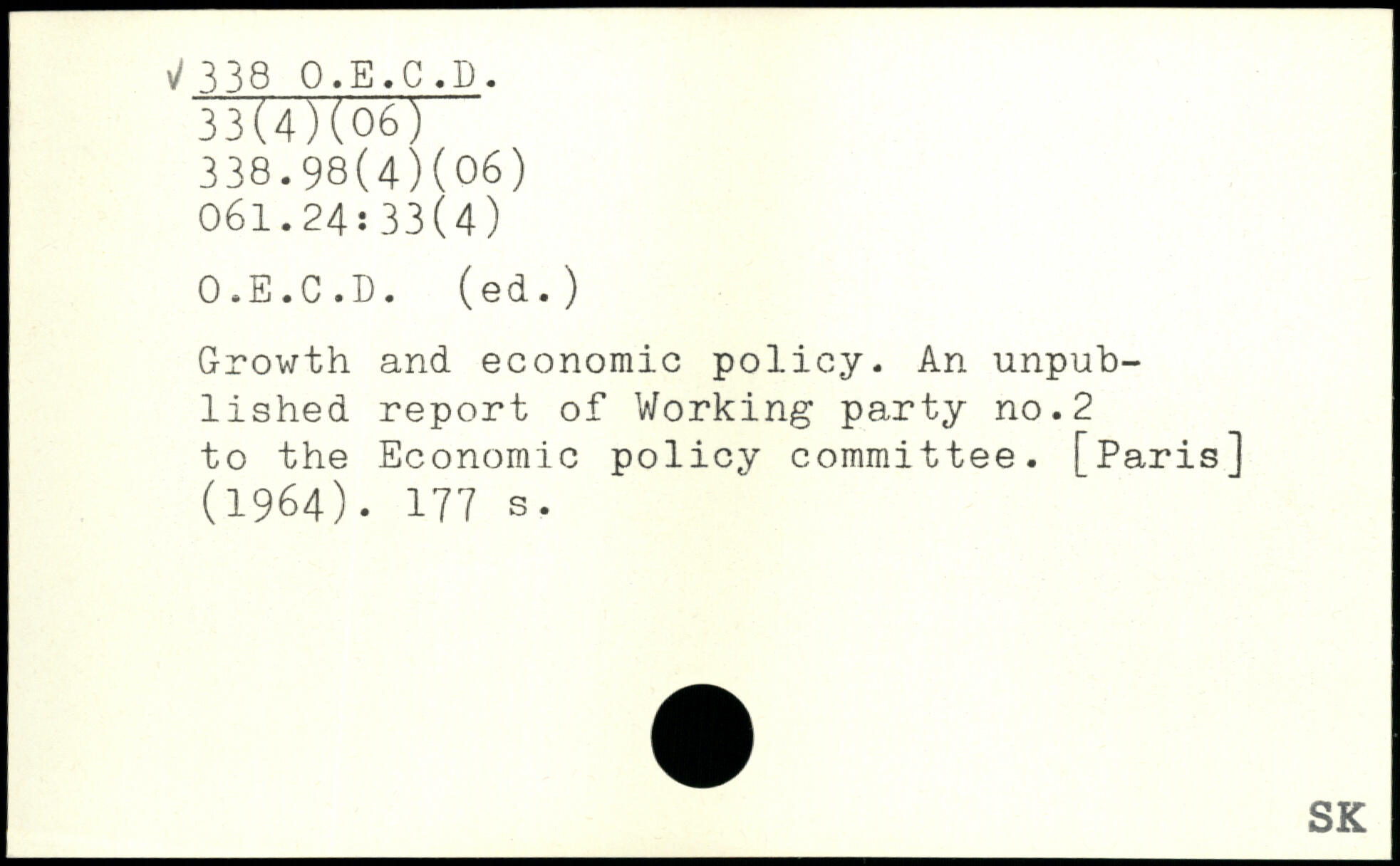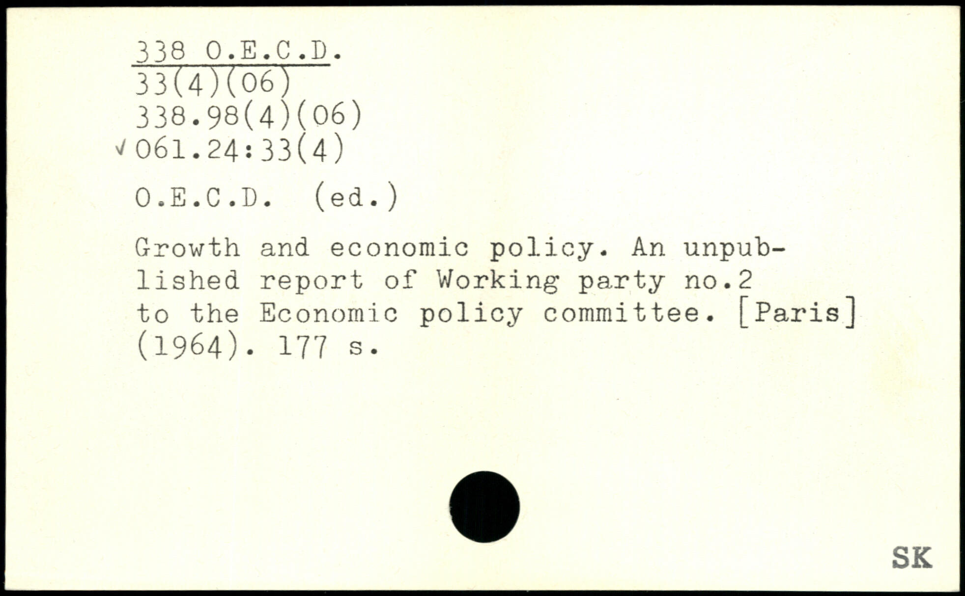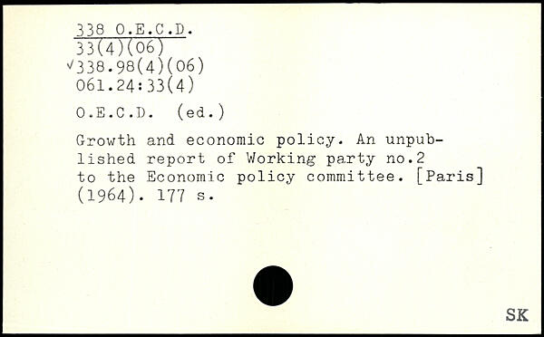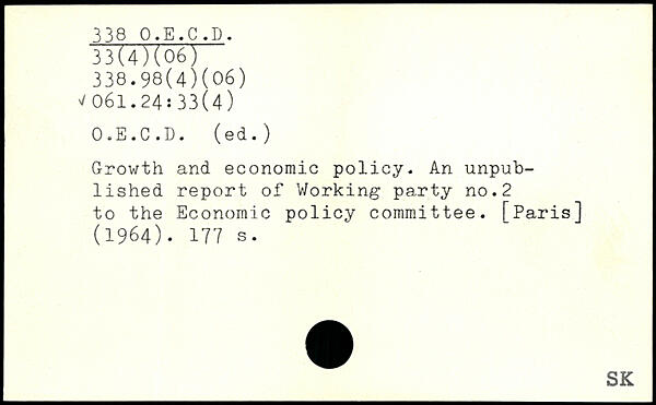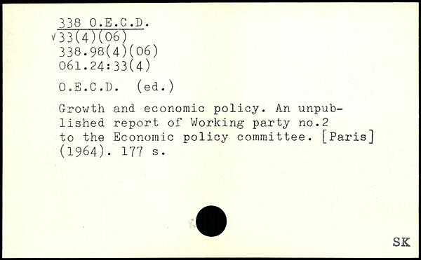Growth and economic policy. An unpublished report of Working party no.2 to the Economic policy committee. [Paris] (1964).