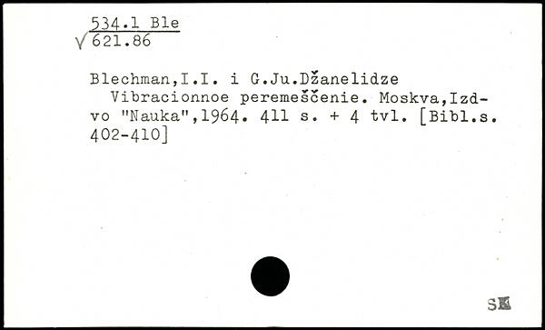 Blechman,1.1. i G. Ju.Bzanelidze Vibracionnoe peremescenie. Moskva,Izd-vo "Nauka",1964