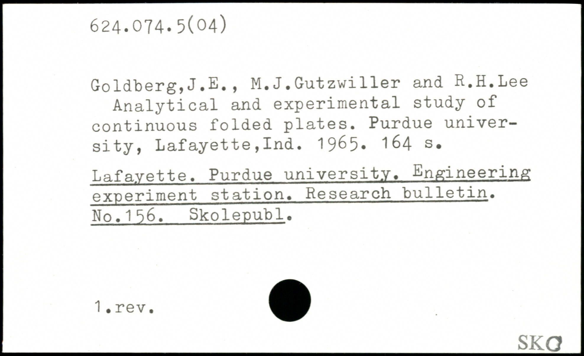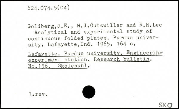 Goldberg,J.E., M.J.Gutzwiller and R.H.Lee Analytical and experimental study of continuous folded plates. Purdue university, Lafayette,Ind. 1965