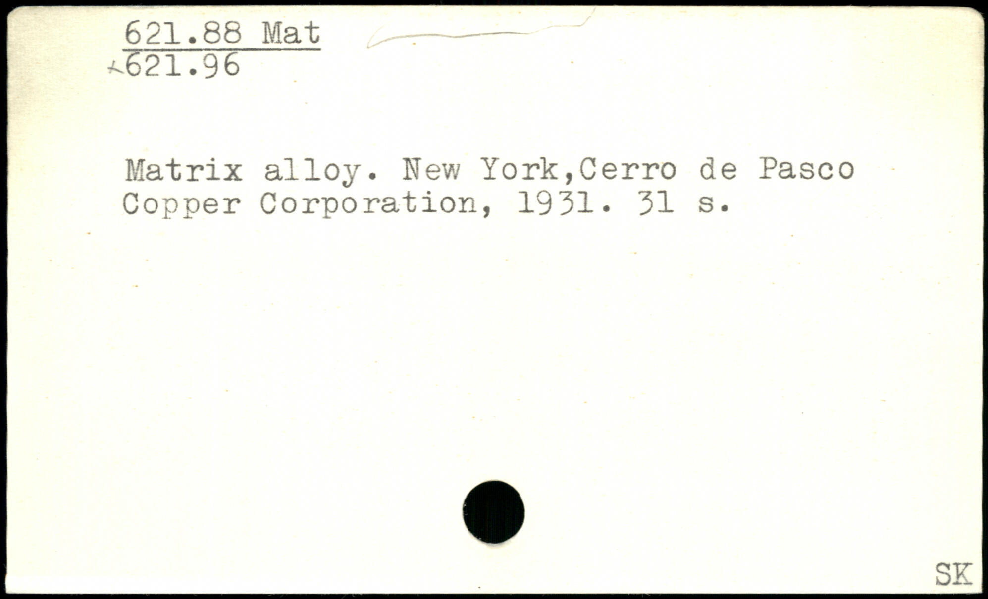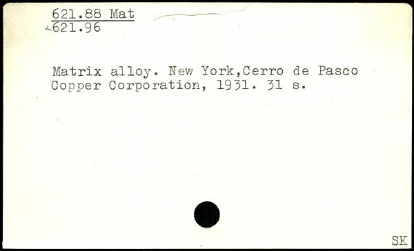 Matrix alloy. New York,Cerro de Pasco Copper Corporation, 1931