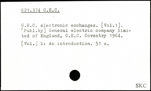 G.E.G. electronic exchanges. [Vol.l], r