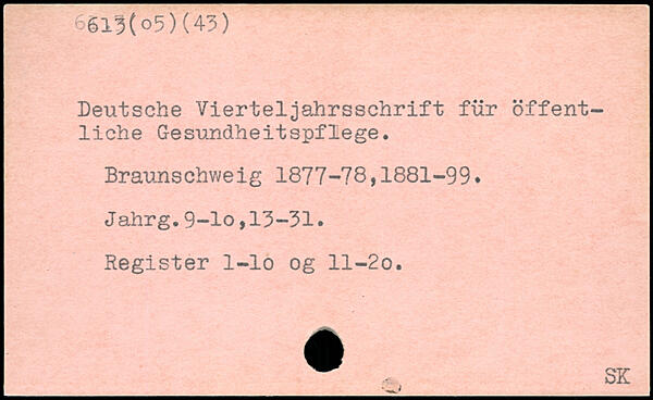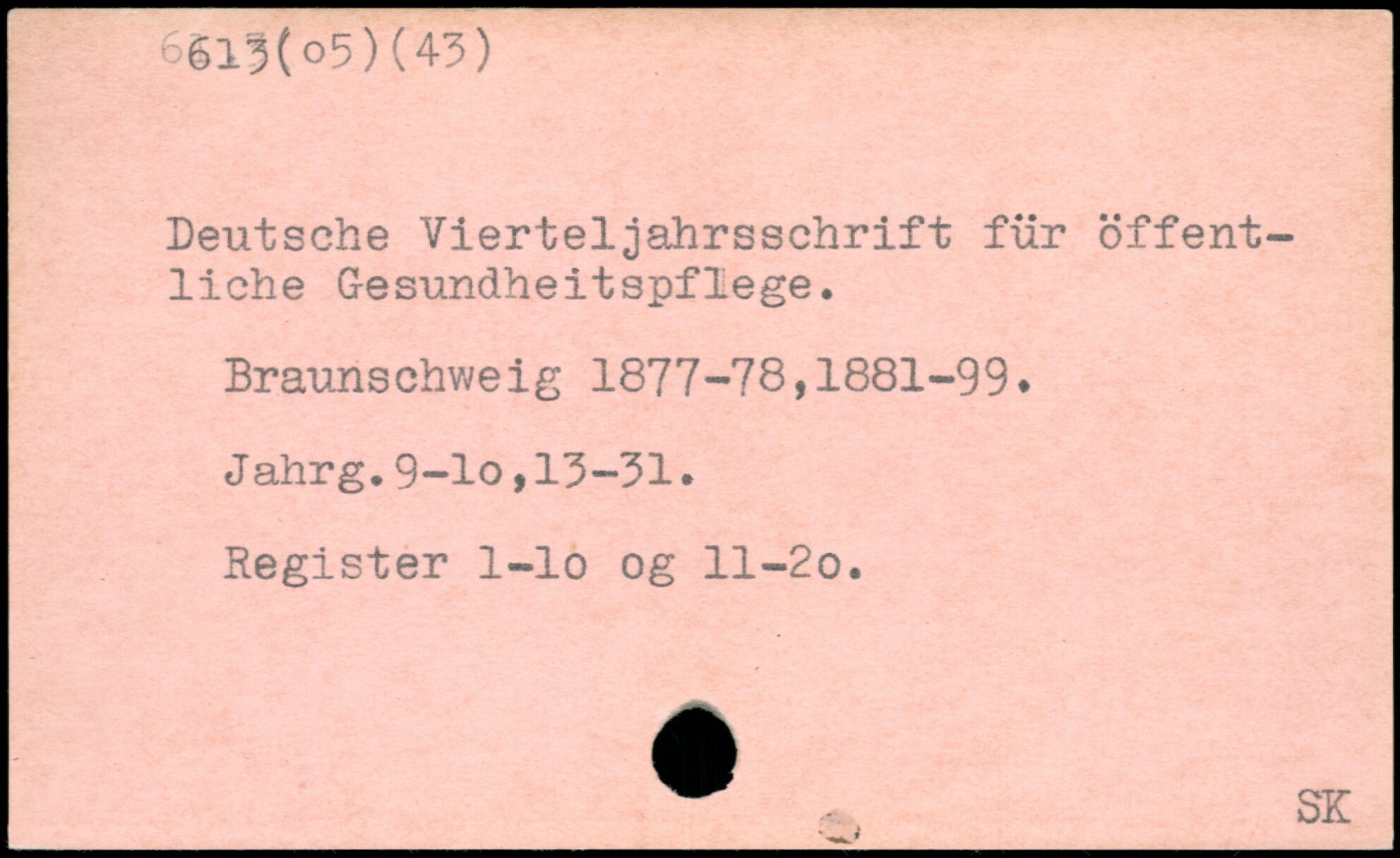Deutsche Vierteljahrsschrift für öffentliche Gesundheitspflege. Braunschweig 1877-78,1881-99. Jahrg.9-lo,13-31. Register l-lo og ll-2o.