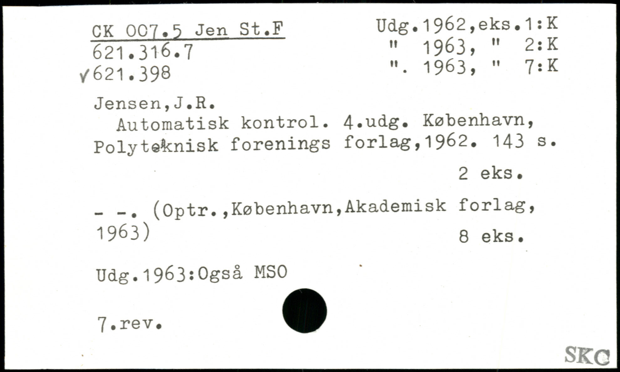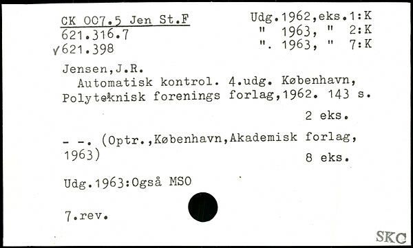 Automatisk kontrol. 4,udg. København, Polyteknisk forenings forlag,19^2.