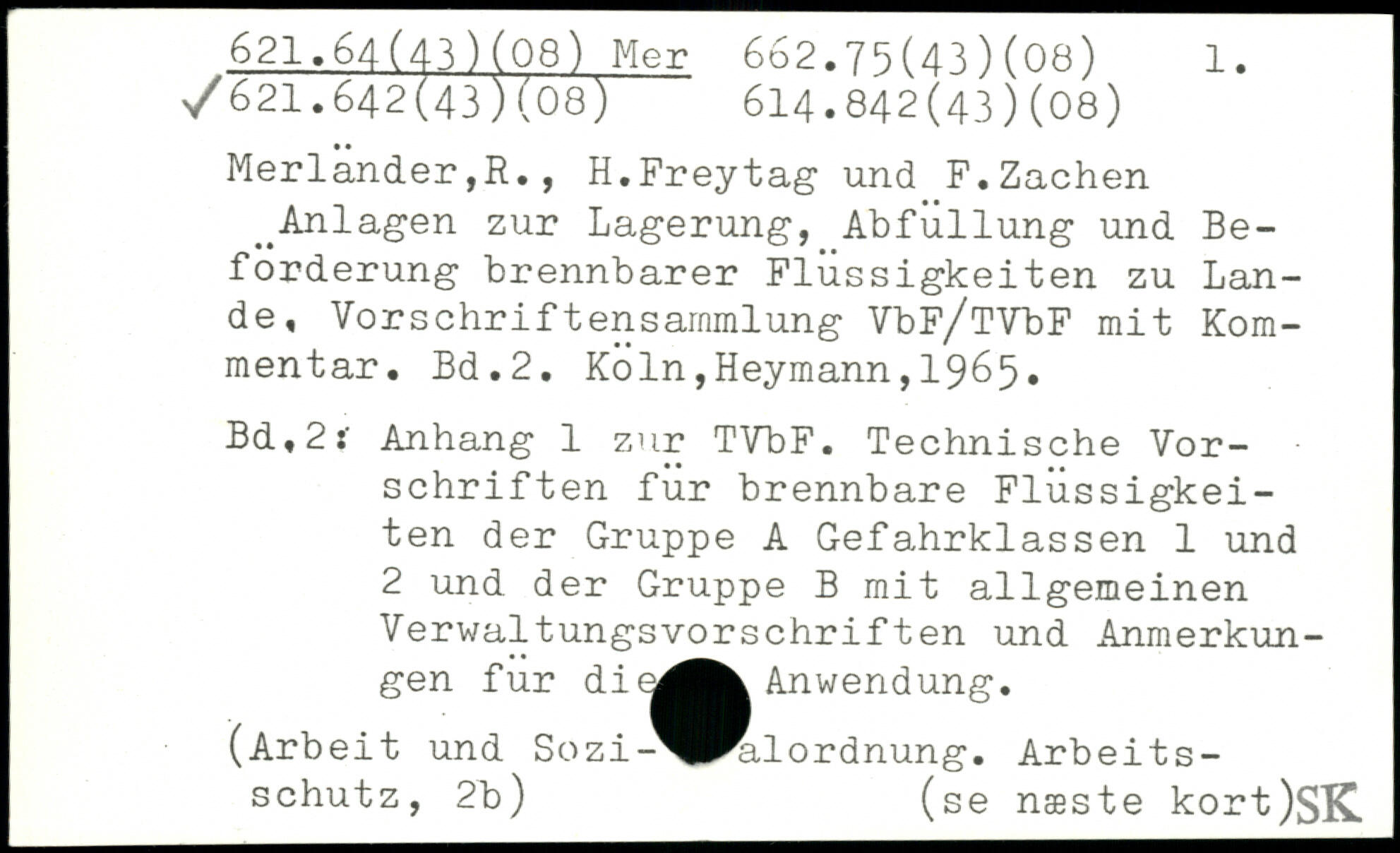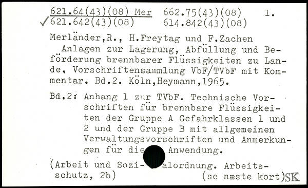 Merlander,R., H.Freytag und F.Zachen ^Anlagen zur Lagerung, Abfüllung und Beförderung brennbarer Flussigkeiten zu Lande. Vorschriftensarnmlung VbF/TVbF mit Kommentar.