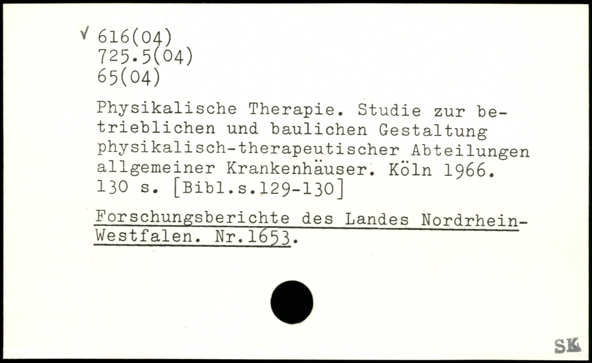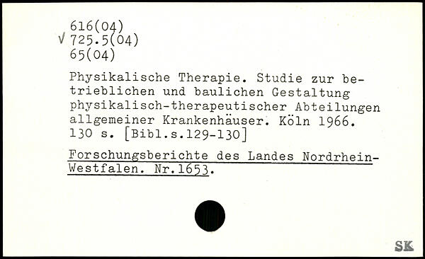 Physikalische Therapie. Studie zur betrieblichen und baulichen Gestaltung physikalisch-therapeutischer Abteilungen allgemeiner Krankenhäuser.