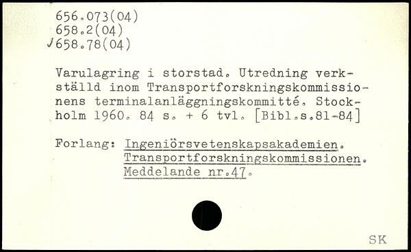 Varulagring i storstad, Utredning verkställd inom Transportforskningskommissio-nens terminalanläggningskommitté