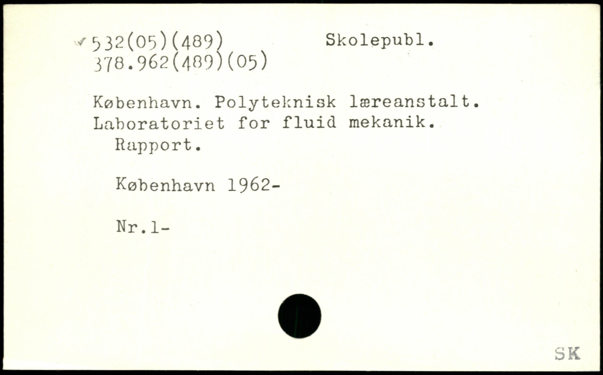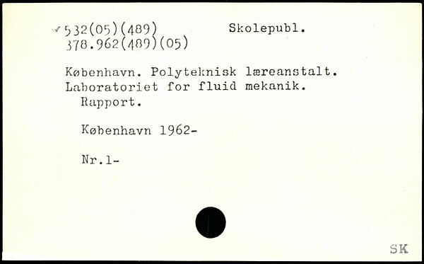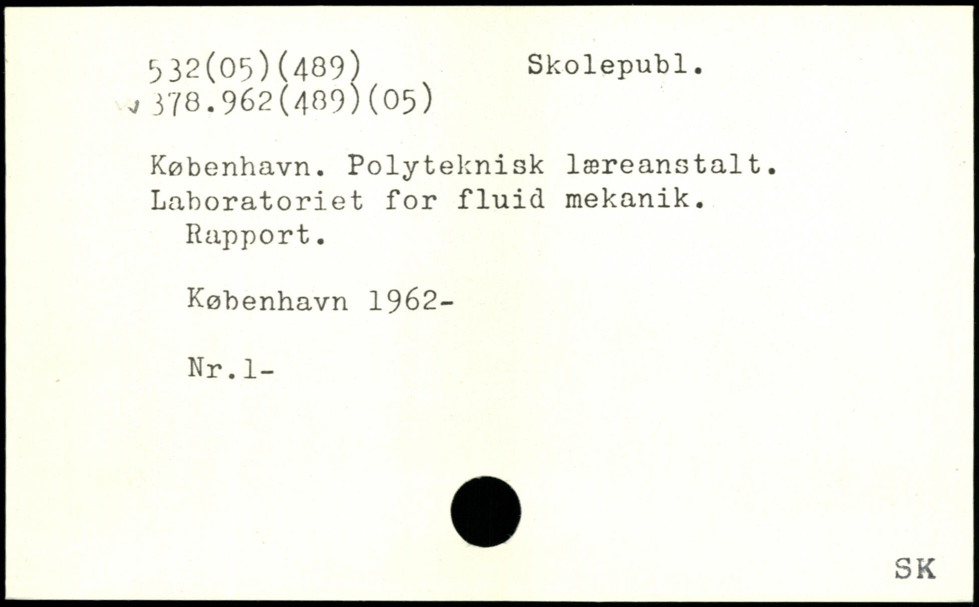 København. Polyteknisk læreanstalt. Laboratoriet for fluid mekanik. Rapport.