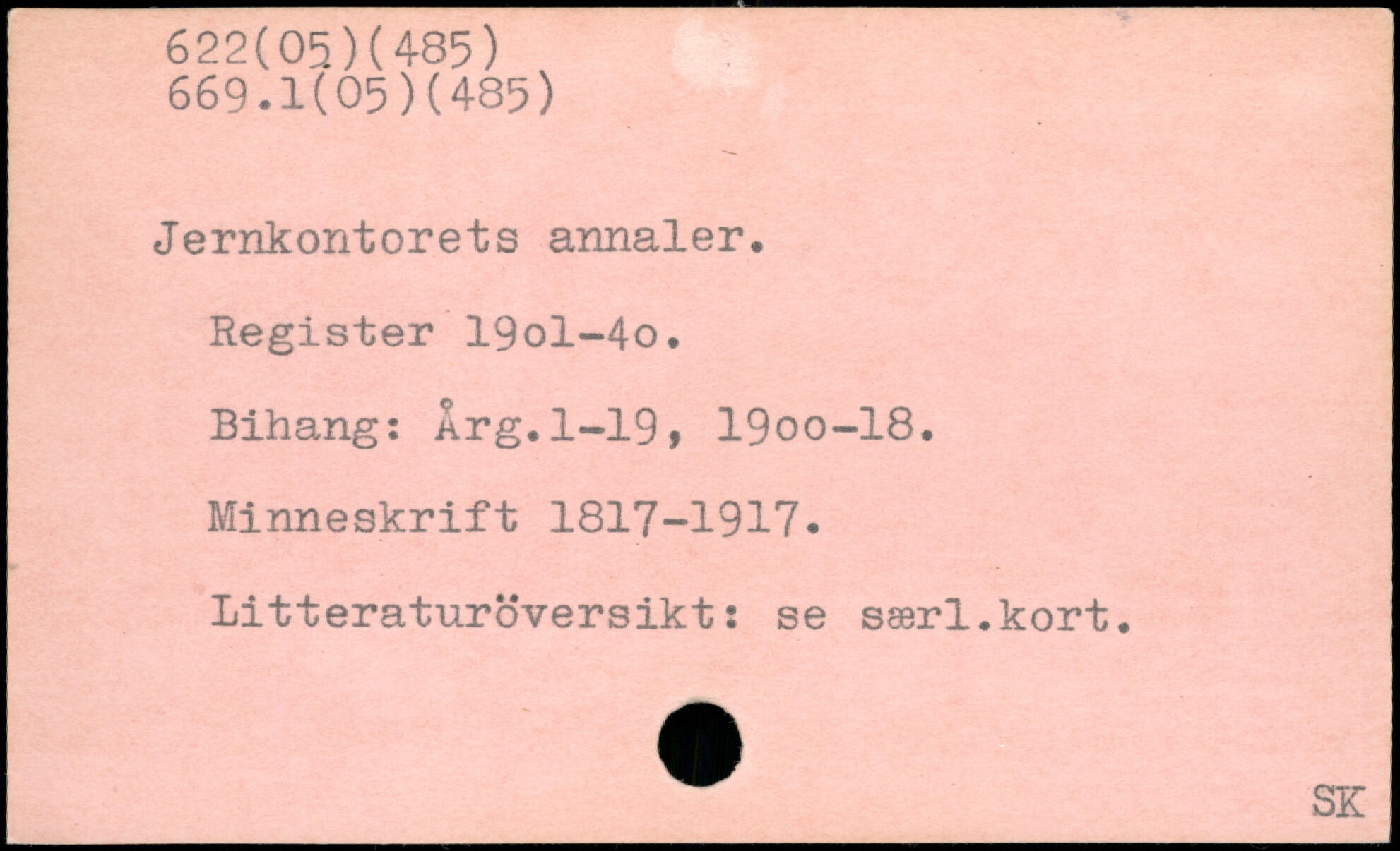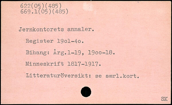 Jernkontorets annaler. Register 19ol-4o. Bihang: Årg.1-19, 19oo-18. Minneskrift 1817-1917. Litteraturöversikt: se særl.kort.