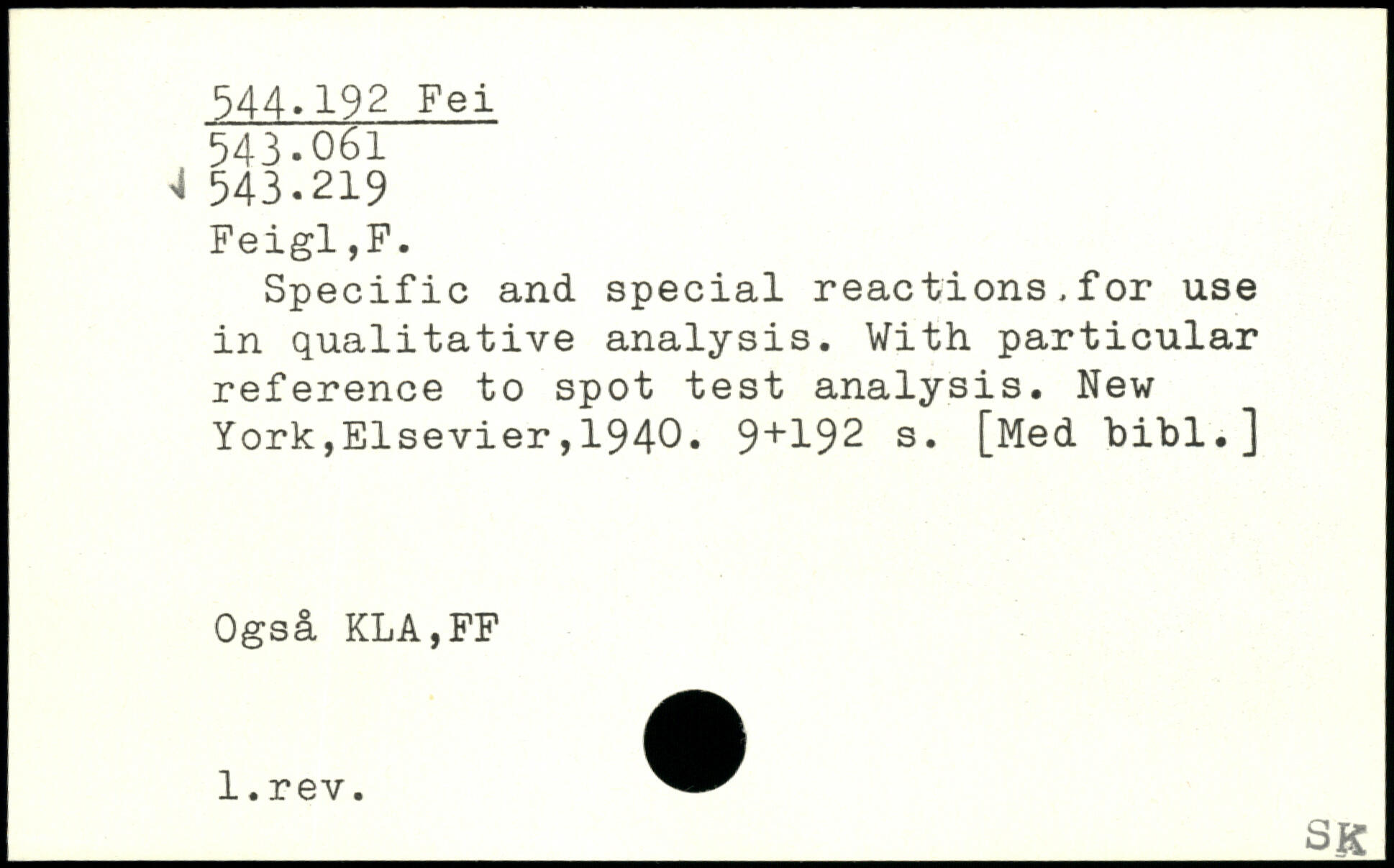 Specific and special reactions,for use in qualitative analysis. With particular reference to spot test analysis.