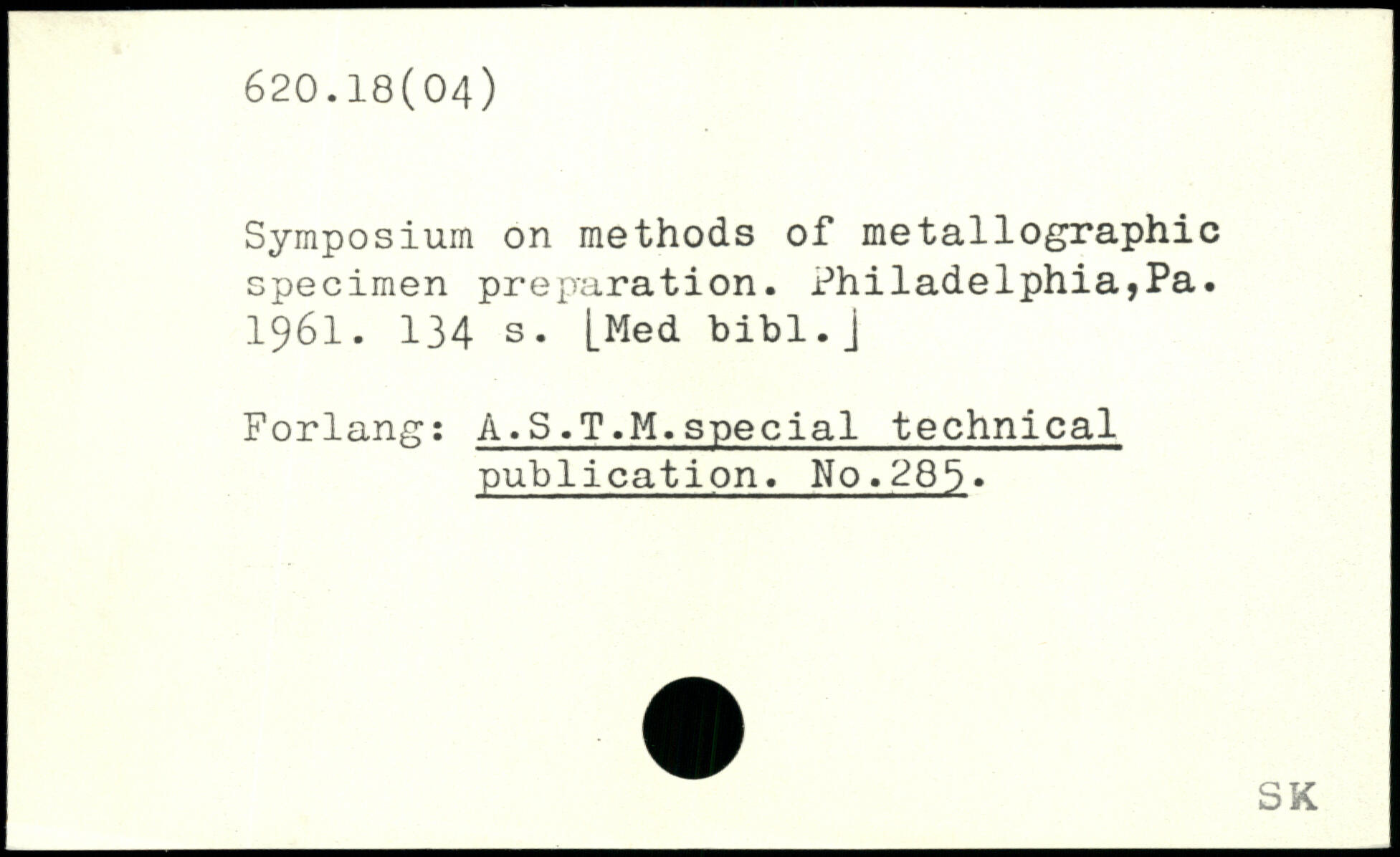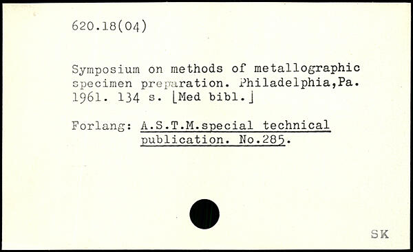 Symposium on methods of metallographic specimen preparation. Philadelphia,Pa. 1961.