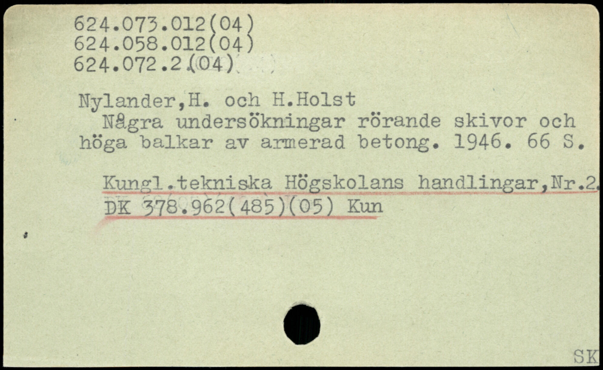 Några undersökningar rörande skivor och höga balkar av armerad betong. 1946.