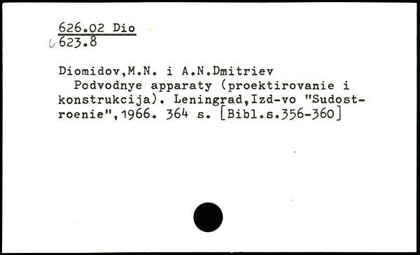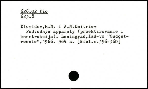 Podvodnye apparaty (proektirovanie i konstrukcija). Leningrad,Izd-vo "Sudost-roenie",1966. 36^ s. [ßibl.s.356-36o]