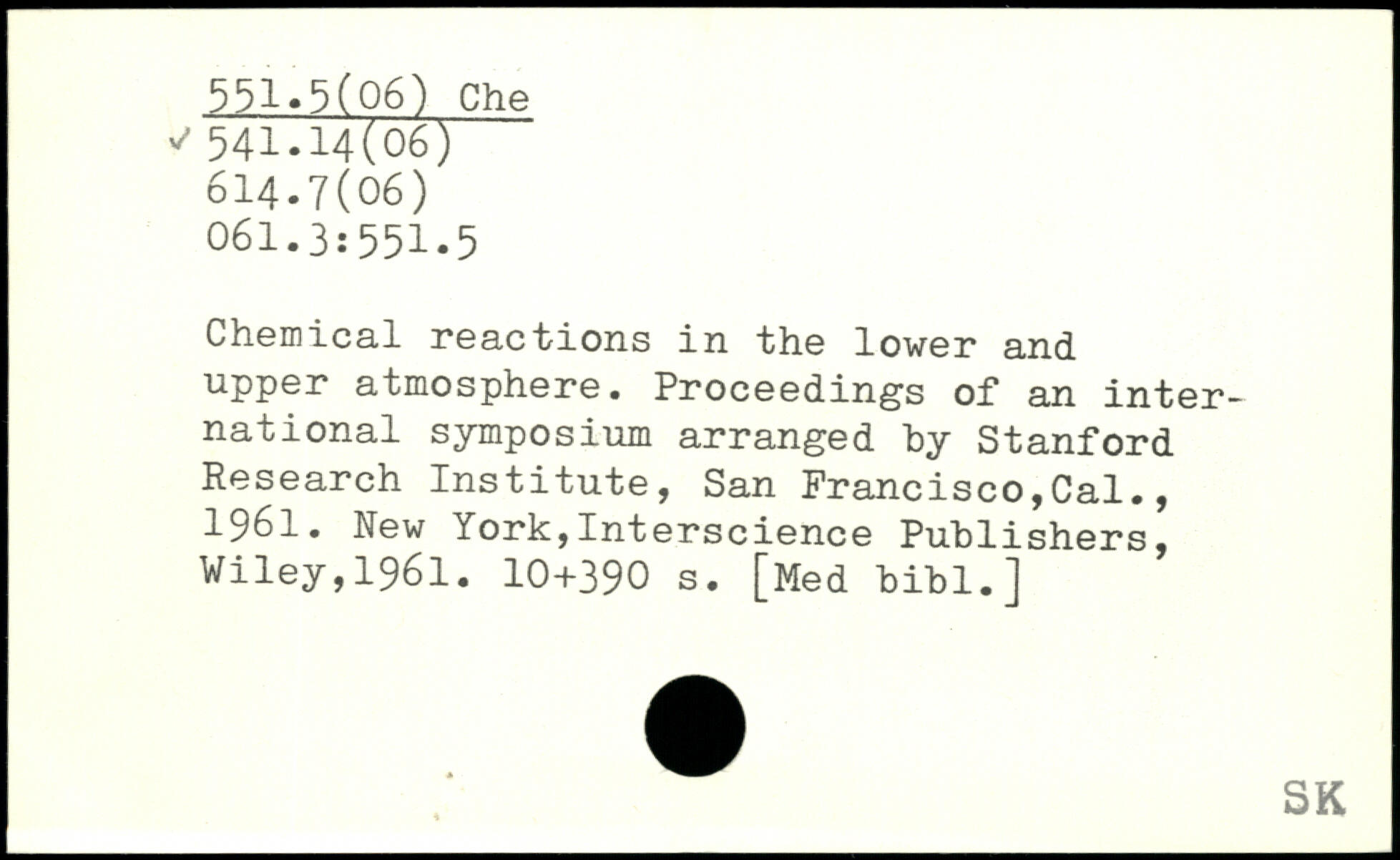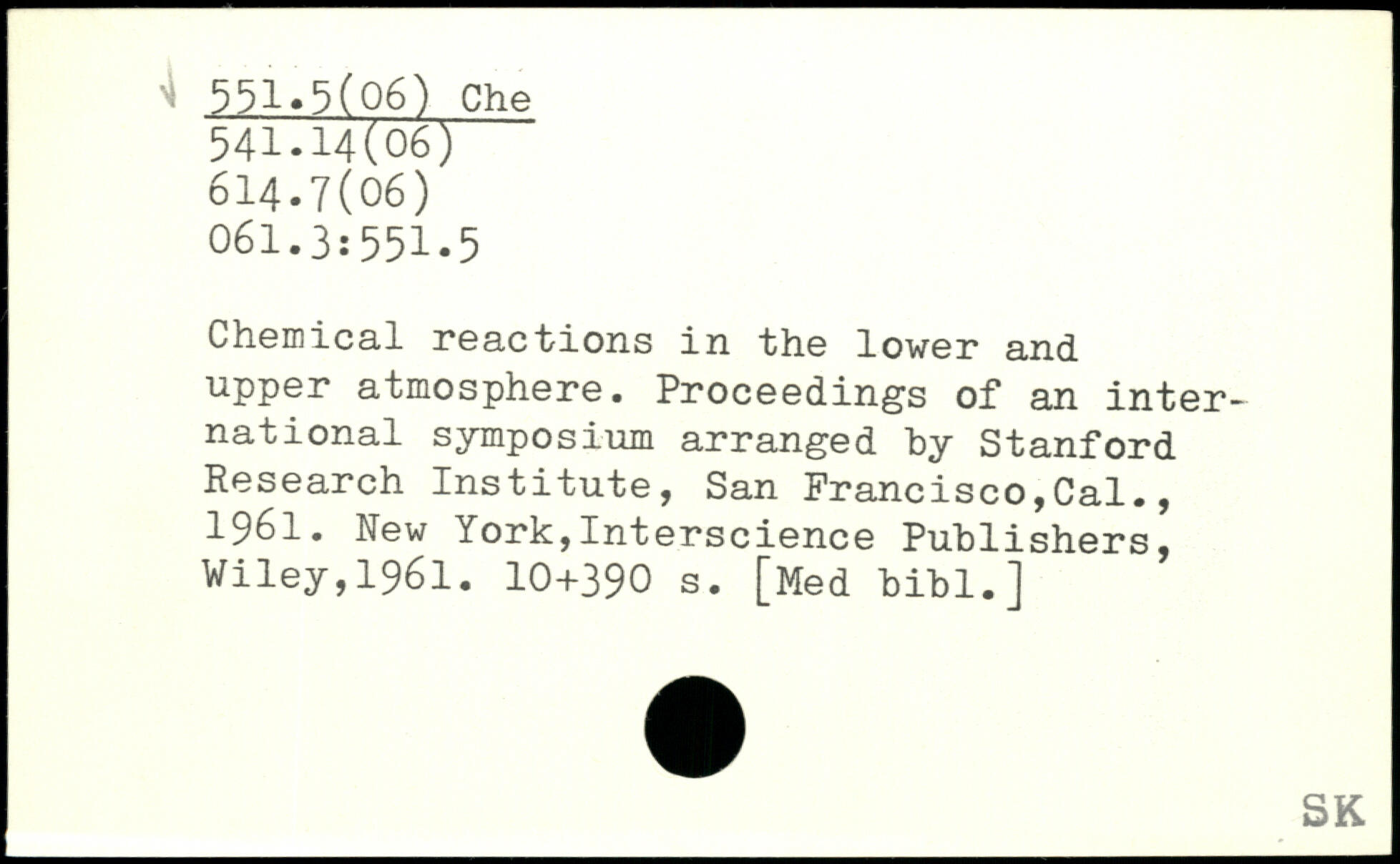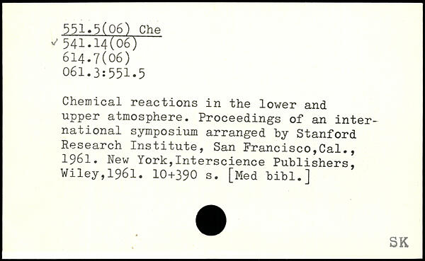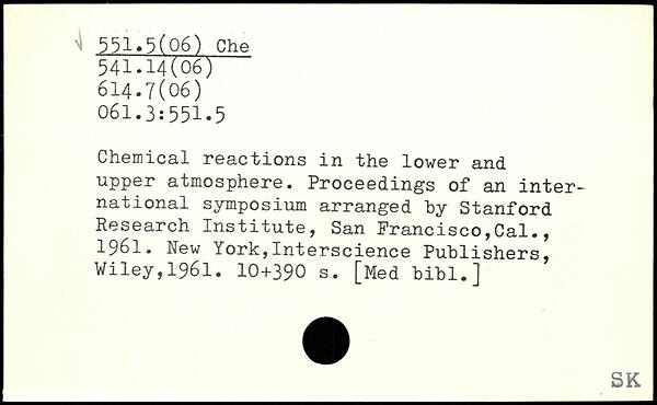 Chemical reactions in the lower and upper atmosphere. Proceedings of an international symposium arranged by