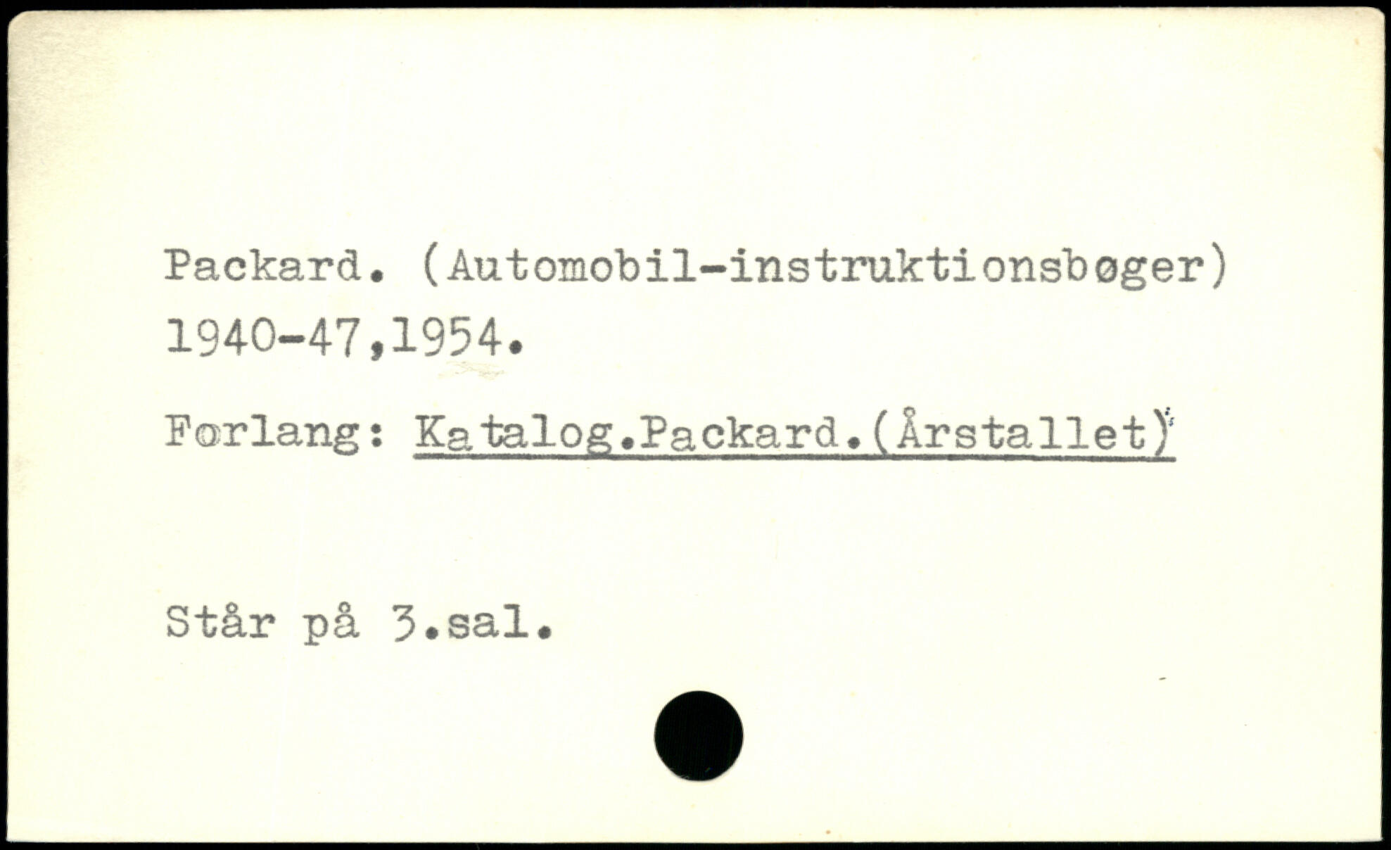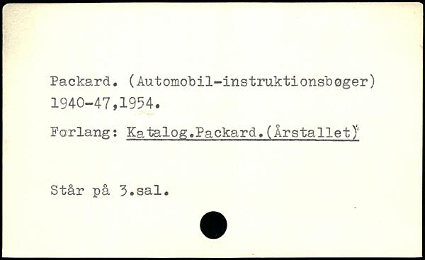 Packard. (Automobil-instruktionsbøger) 1940-47,1954. Forlang: Katalog.Packard, (Årstallet)' Står på 3.sal.