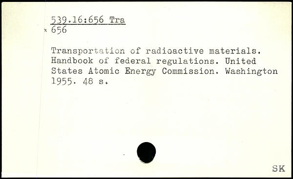 Transportation of radioactive materials. Handbook of federal regulations. United States Atomic Energy Commission.