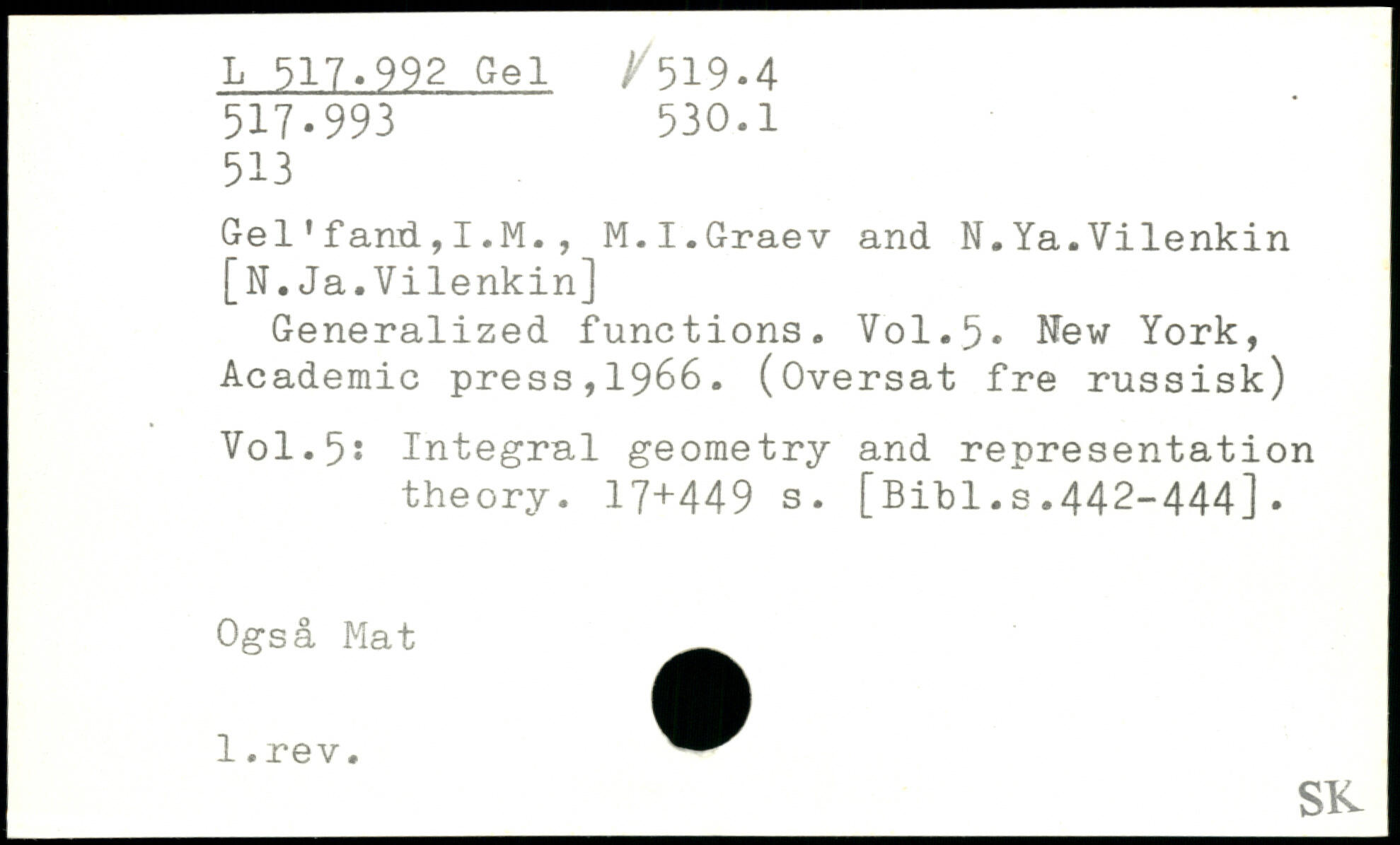 Gel1fand,I.M., M.I.Graev and N.Ya.Vilenkin [N.Ja.Vilenkin] Generalized functions.