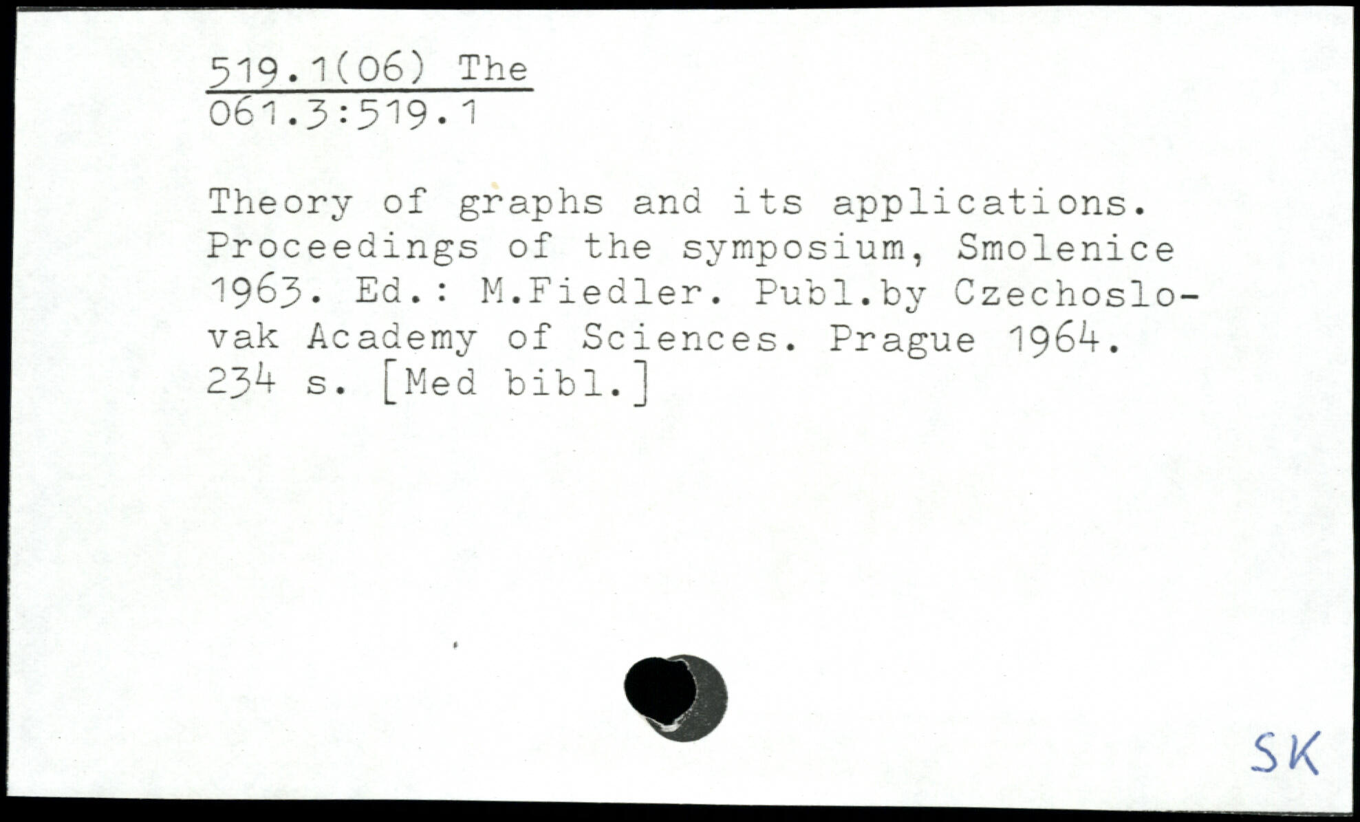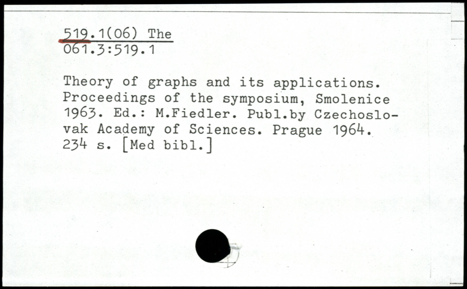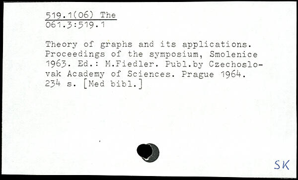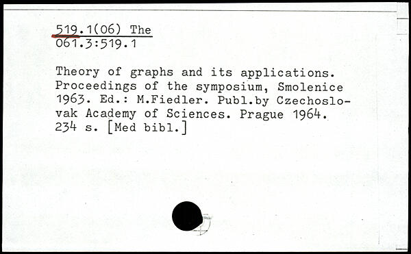 Theory of graphs and its applications. Proceedings of the symposium, Smolenice 1963, Ed.: M.Fiedler.