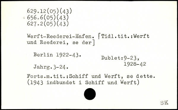 Werft-Reederei-Hafen. fTidl.tit.:Werft und. Reederei, se der]