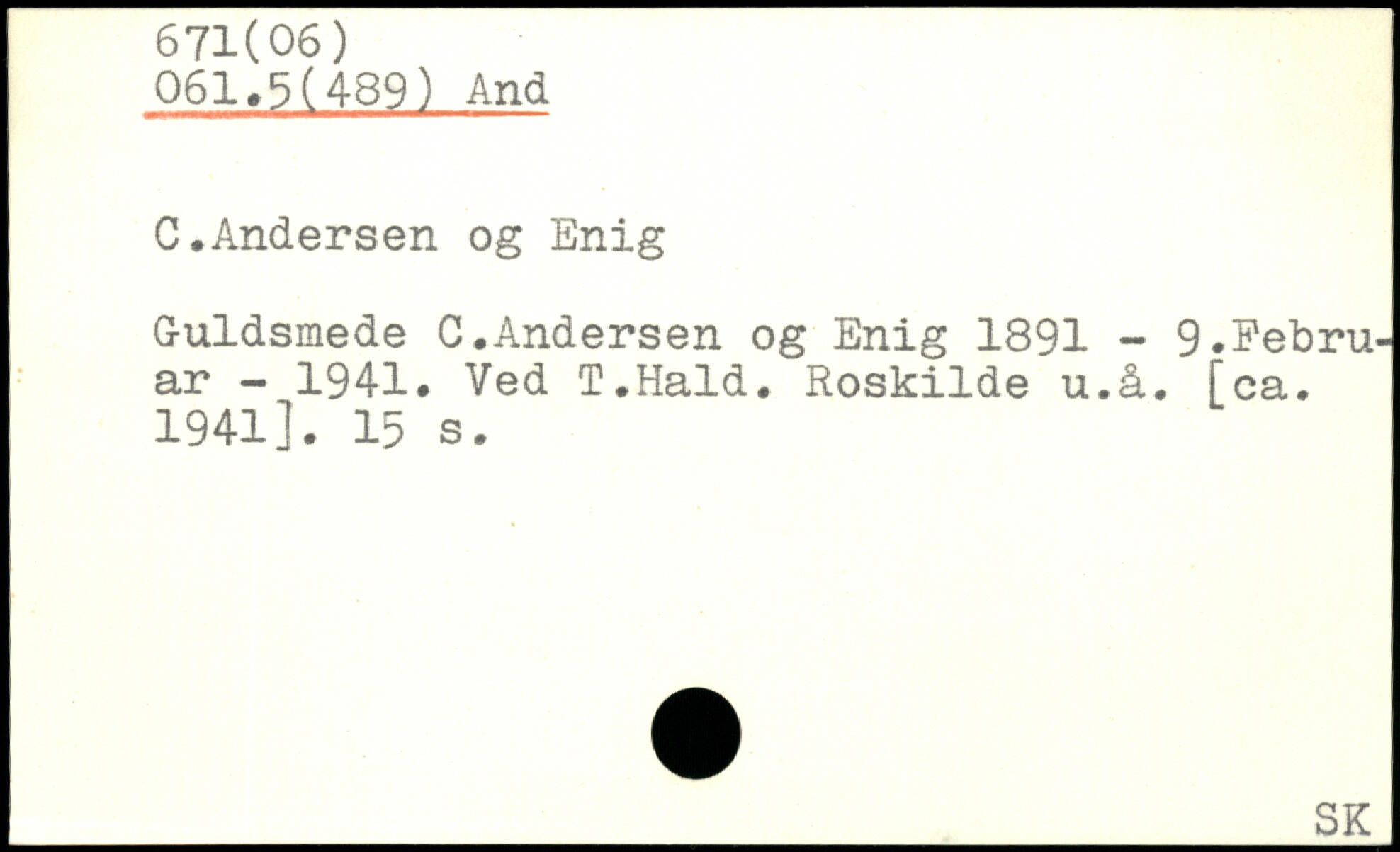 061>5(439) And C.Andersen og Enig Ouldsmede C.Andersen og Enig 1891 - 9.Februar - 1941. Ved T.Hald. Roskilde u.å. [ca. 1941].