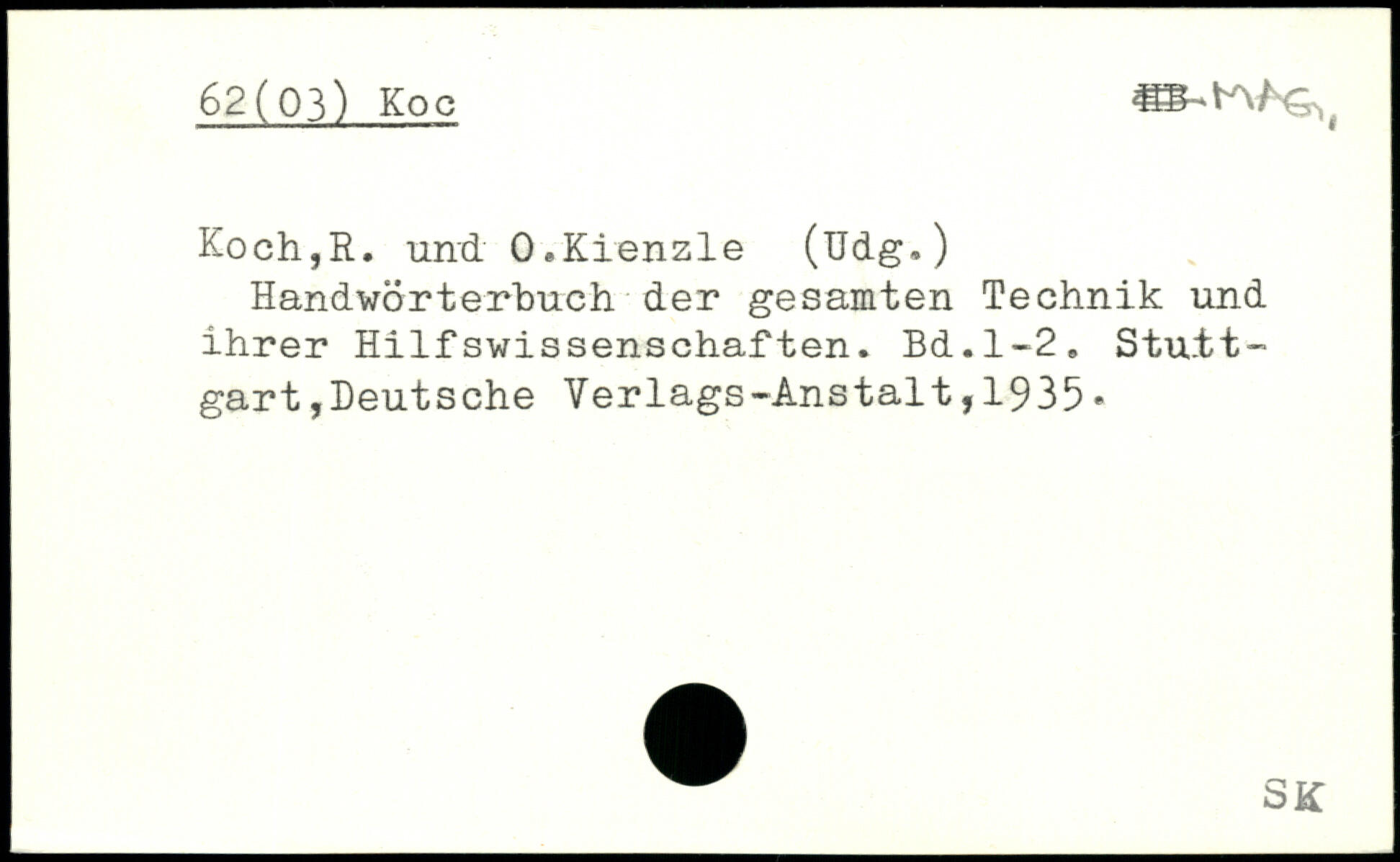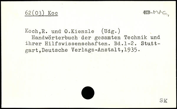 Koch,R. und. O.Kienzle (üdg.) Handwörterbuch der gesamten Technik und ihrer Hilfswissenschaften.