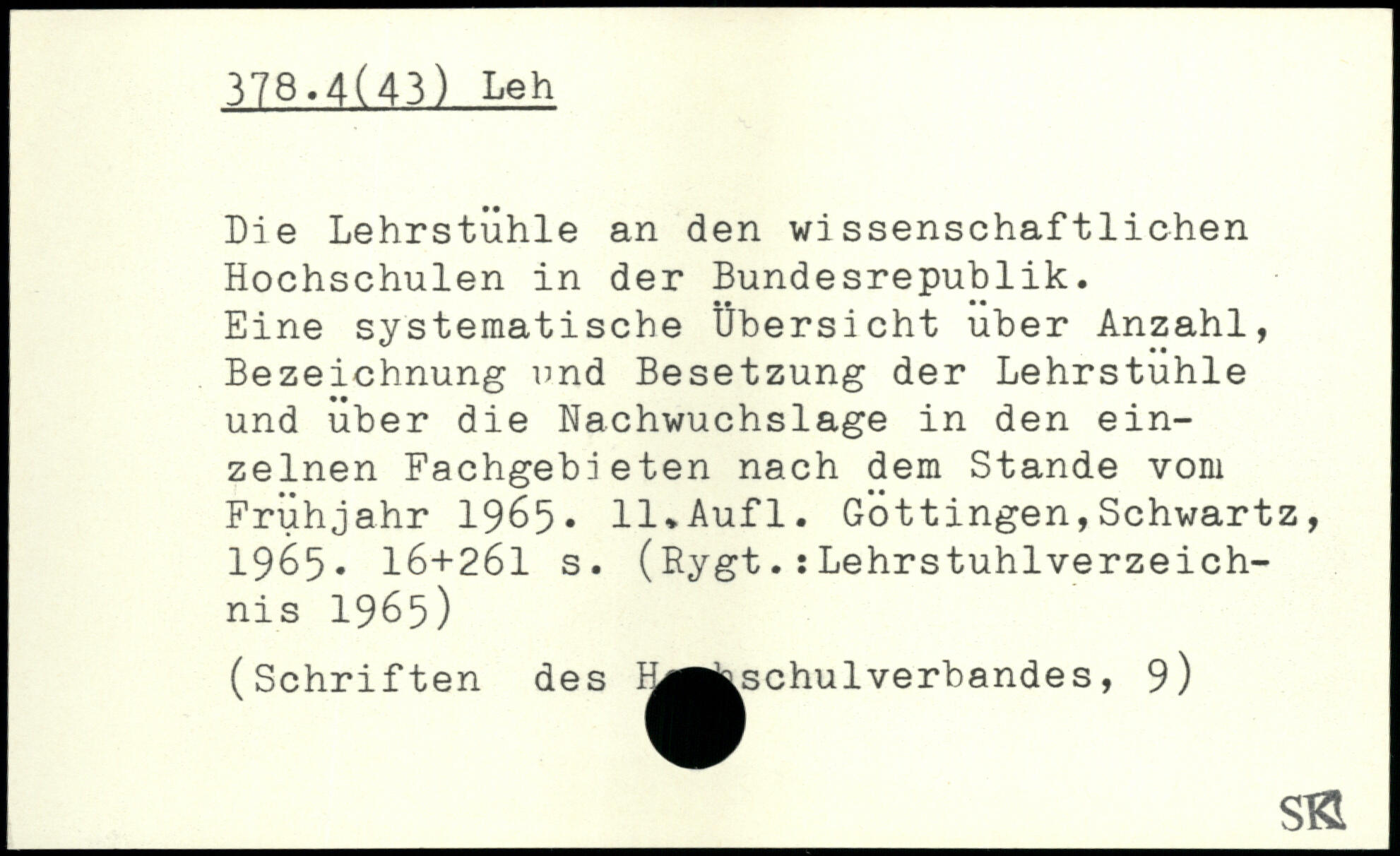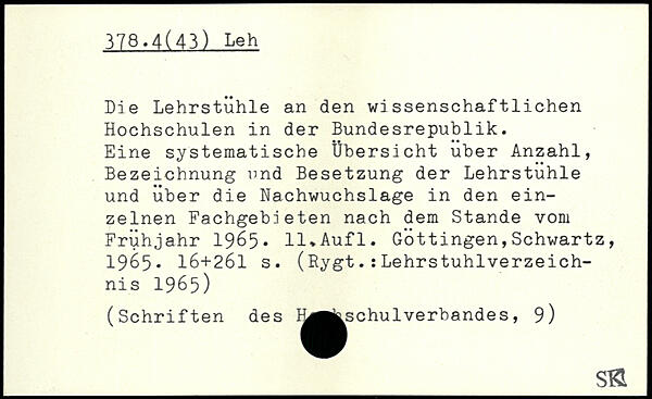Die Lehrstühle an den wissenschaftlichen Hochschulen in der Bundesrepublik. Eine systematische Übersicht über Anzahl, Bezeichnung und Besetzung der Lehrstuhle und über die Nachwuchslage in den einzelnen Fachgebieten nach dem Stande vom Frühjahr 1965. ll.Aufl.