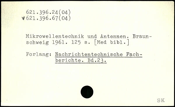 Mikrowellentechnik und Antennen. Braunschweig 1961.