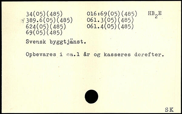 Svensk byggtjanst. Opbevares i oa.l år og kasseres derefter.