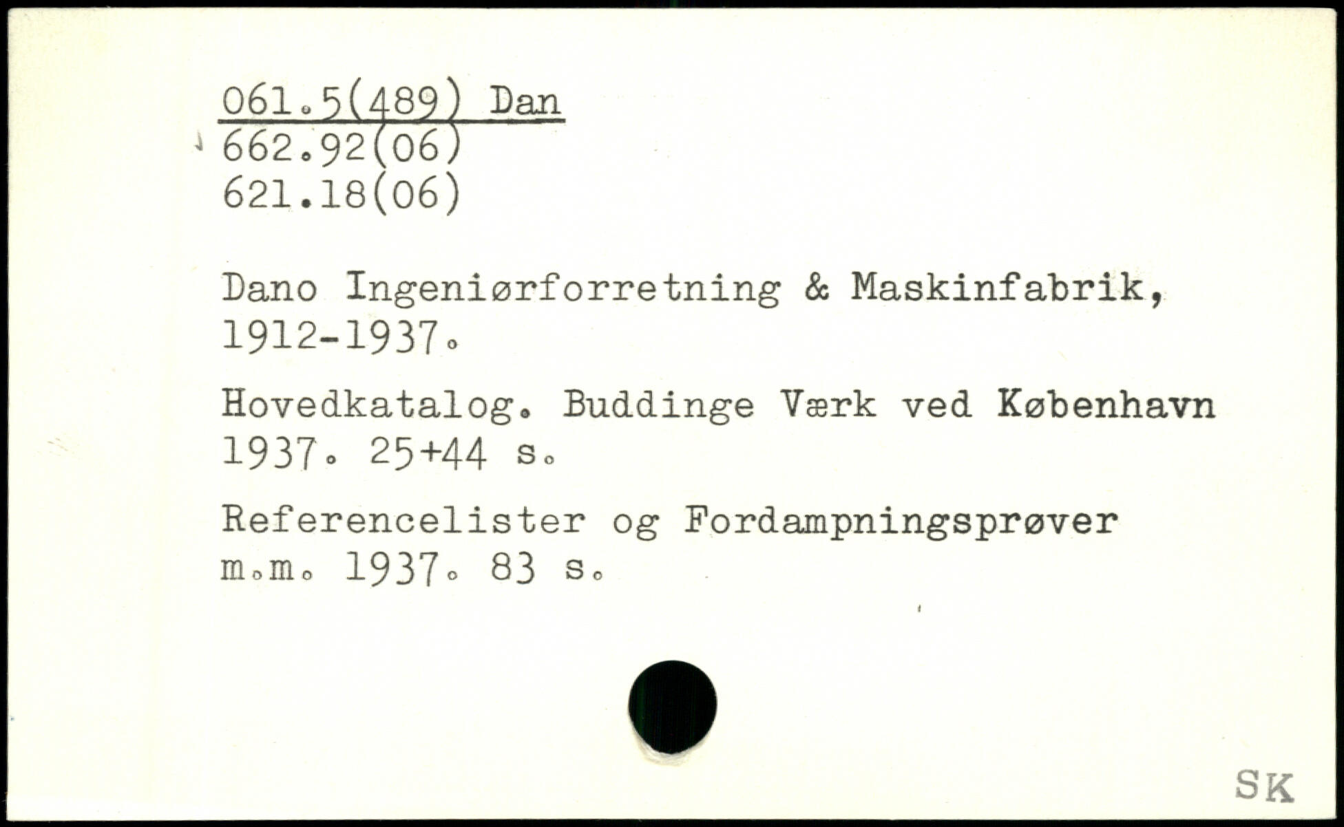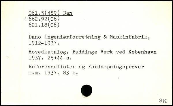 Dano Ingeniørforretning & Maskinfabrik, 1912-1937o Hovedkatalog. Buddinge Værk ved