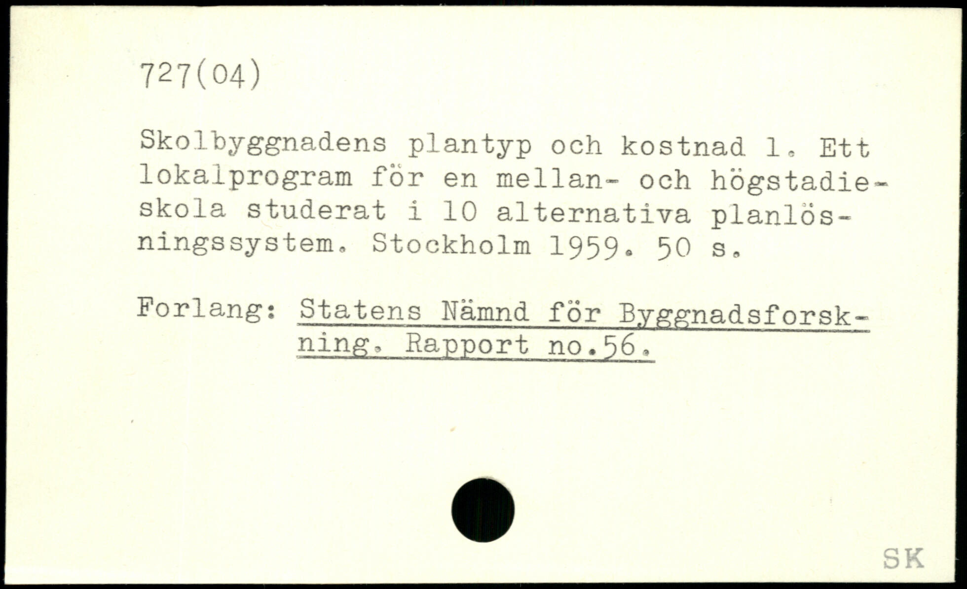 Skolbyggnadens plantyp och kostnad 1. Ett lokalprogram för en mellan- och högstadieskola studerat i 10 alternativa planlos-ningssystem.