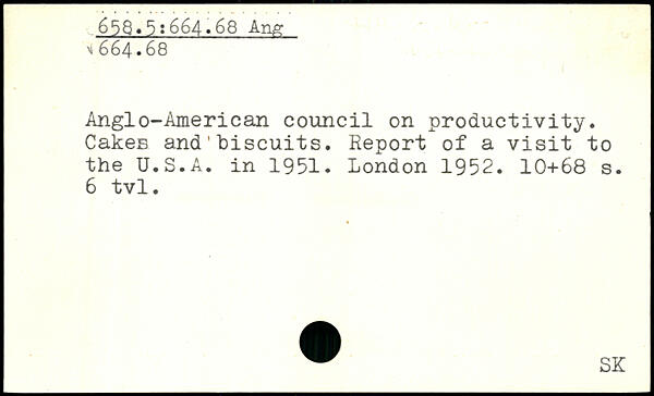 Anglo-American council on productivity. Cakes and biscuits. Report of a visit to the U.S.A. in 1951-