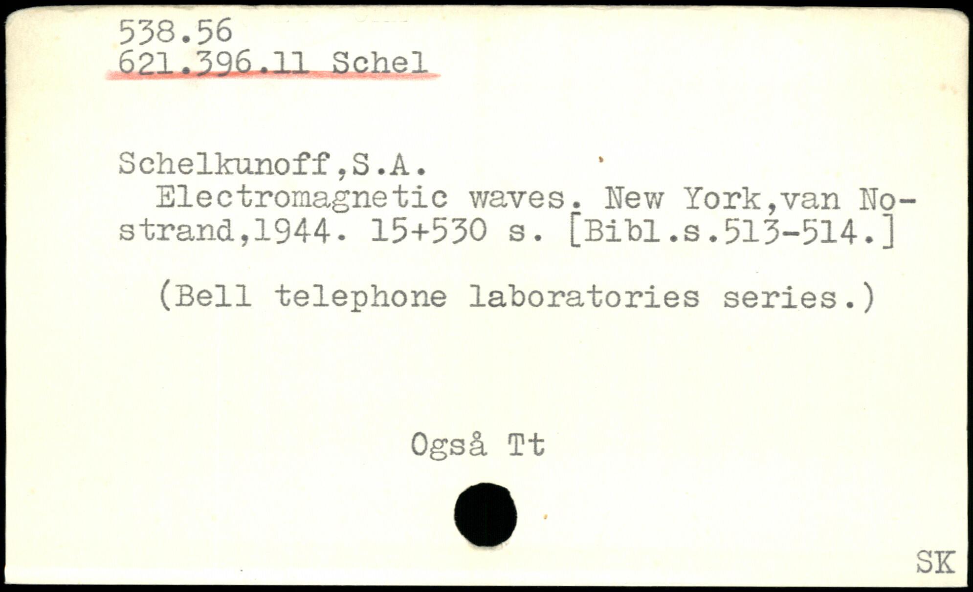 fiP1^Q6.n Schel Schelkunoff,S.A. Electromagnetic waves. New York,van Nostrand, 1944.