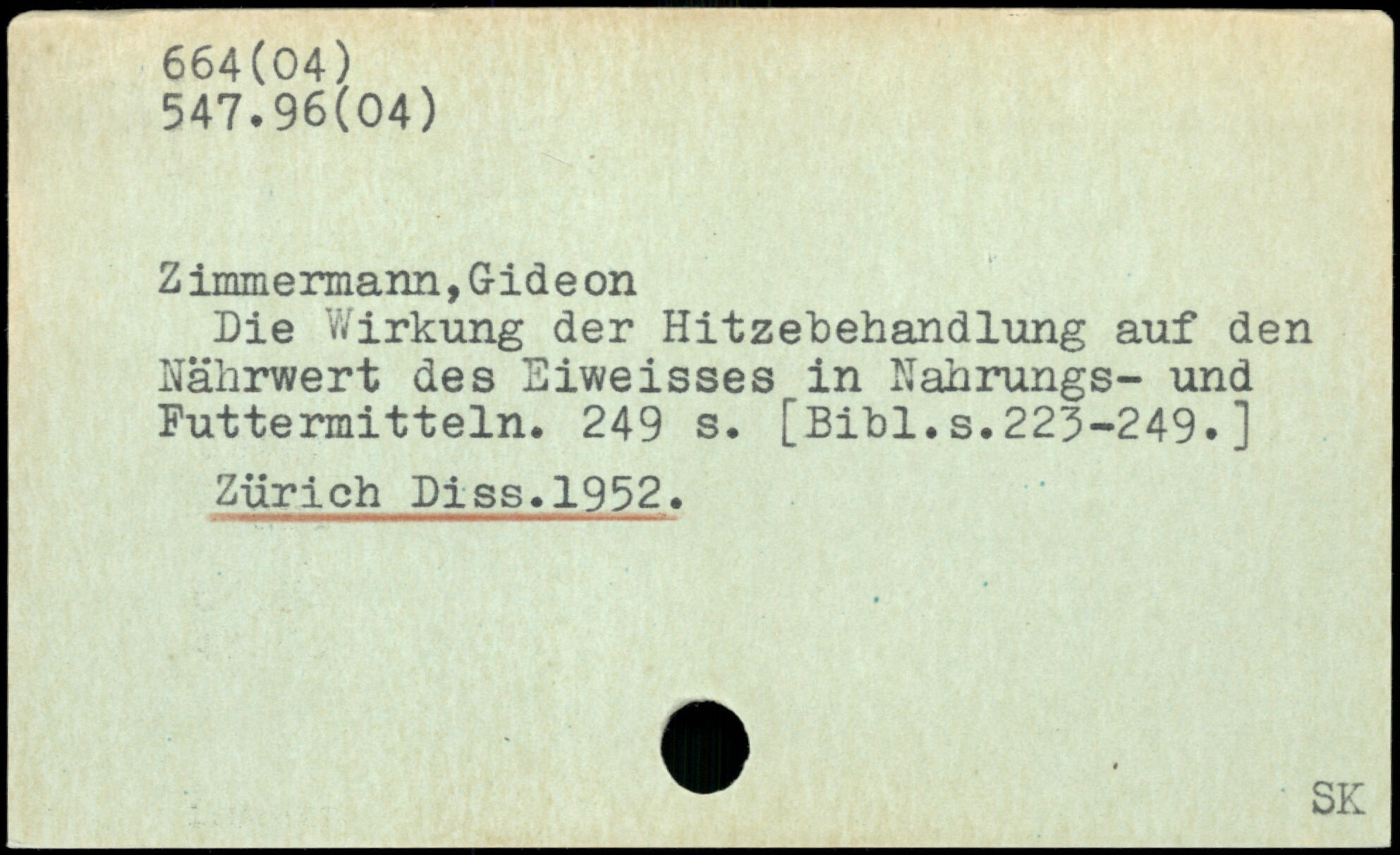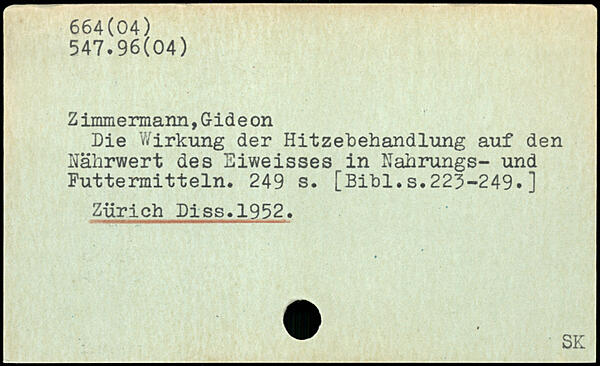 Z immermann, Gid e on Die Wirkung der Hitzebehandlung auf den Nährwert des Siweisses in Nahrungs- und Futtermitteln.