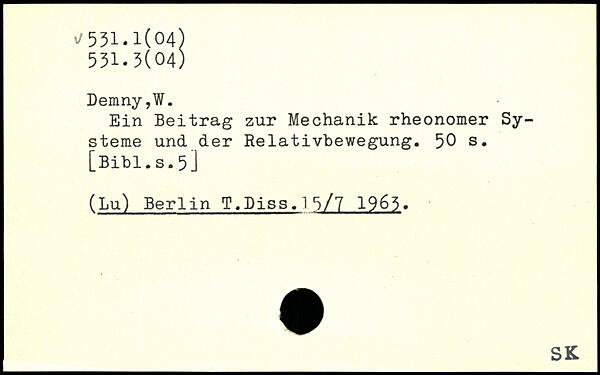 Ein Beitrag zur Mechanik rheonomer Systeme und der Relativbewegung.