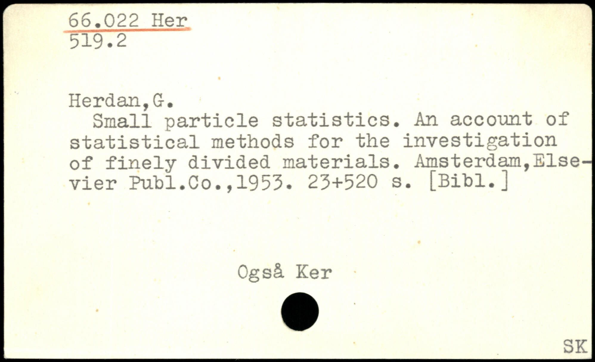 Small particle statistics. An account of statistical methods for the investigation of finely divided materials, Amsterdam,Elsevier Publ.Co.,1955.