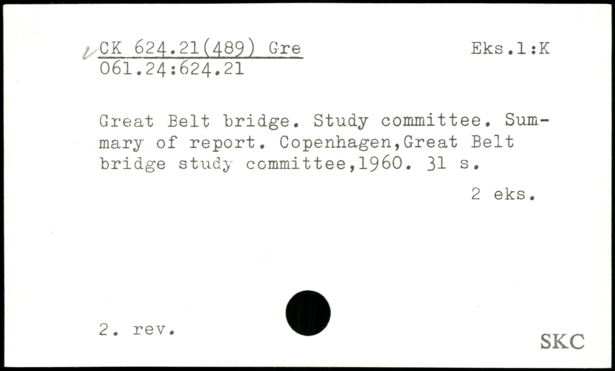 Great Belt bridge. Study committee. Summary of report. Copenhagen,Great Belt bridge study committee,1960.