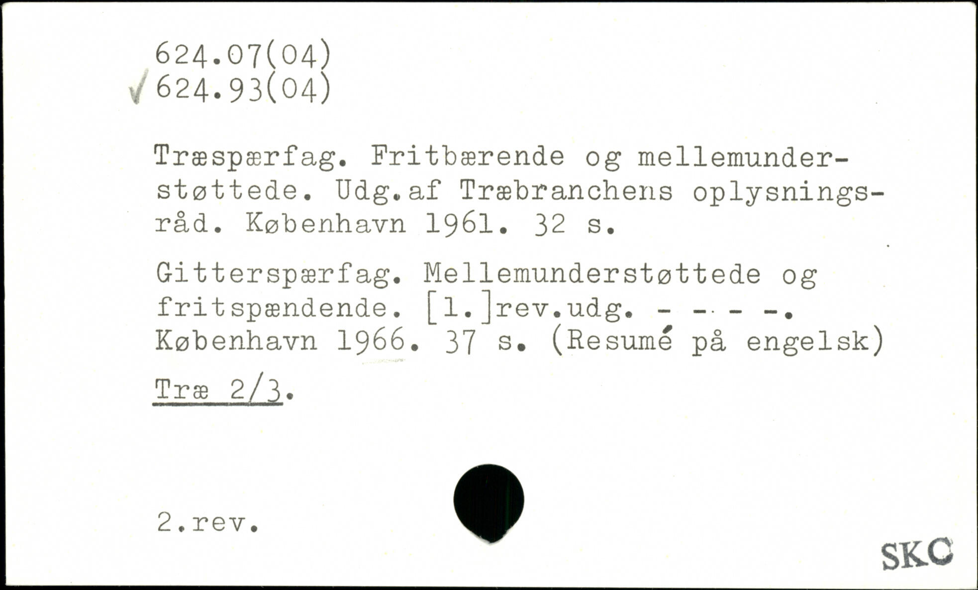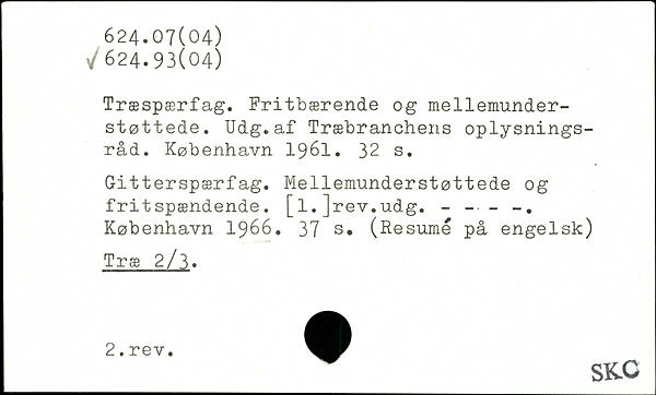 Træspærfag. Fritbærende og mellemunder-støttede. Udg.af Træbranchens oplysningsråd.