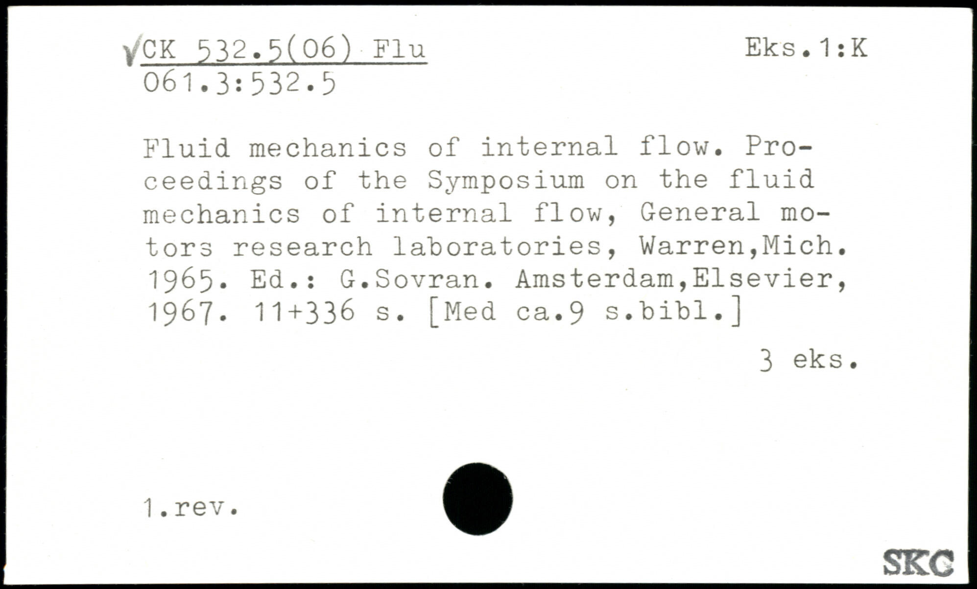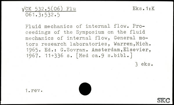 Fluid mechanics of internal flow. Proceedings of the Symposium on the fluid mechanics of internal flow, General motors research laboratories, Warren,Mich. 1965. Ed.: G.Sovran.