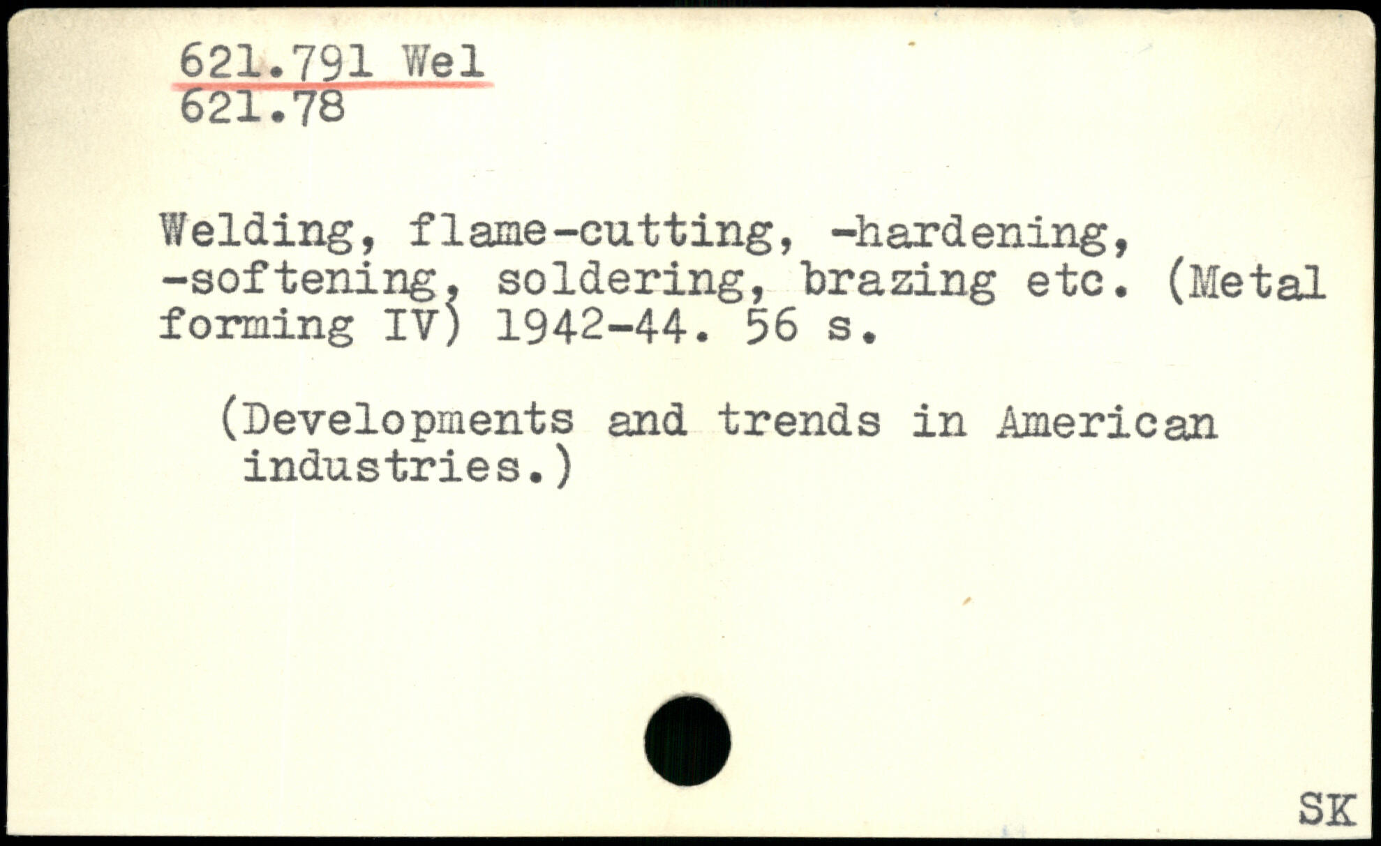 Welding, flame-cutting, -hardening, -softening, soldering, brazing etc. (Metal forming IV; 1942-44.